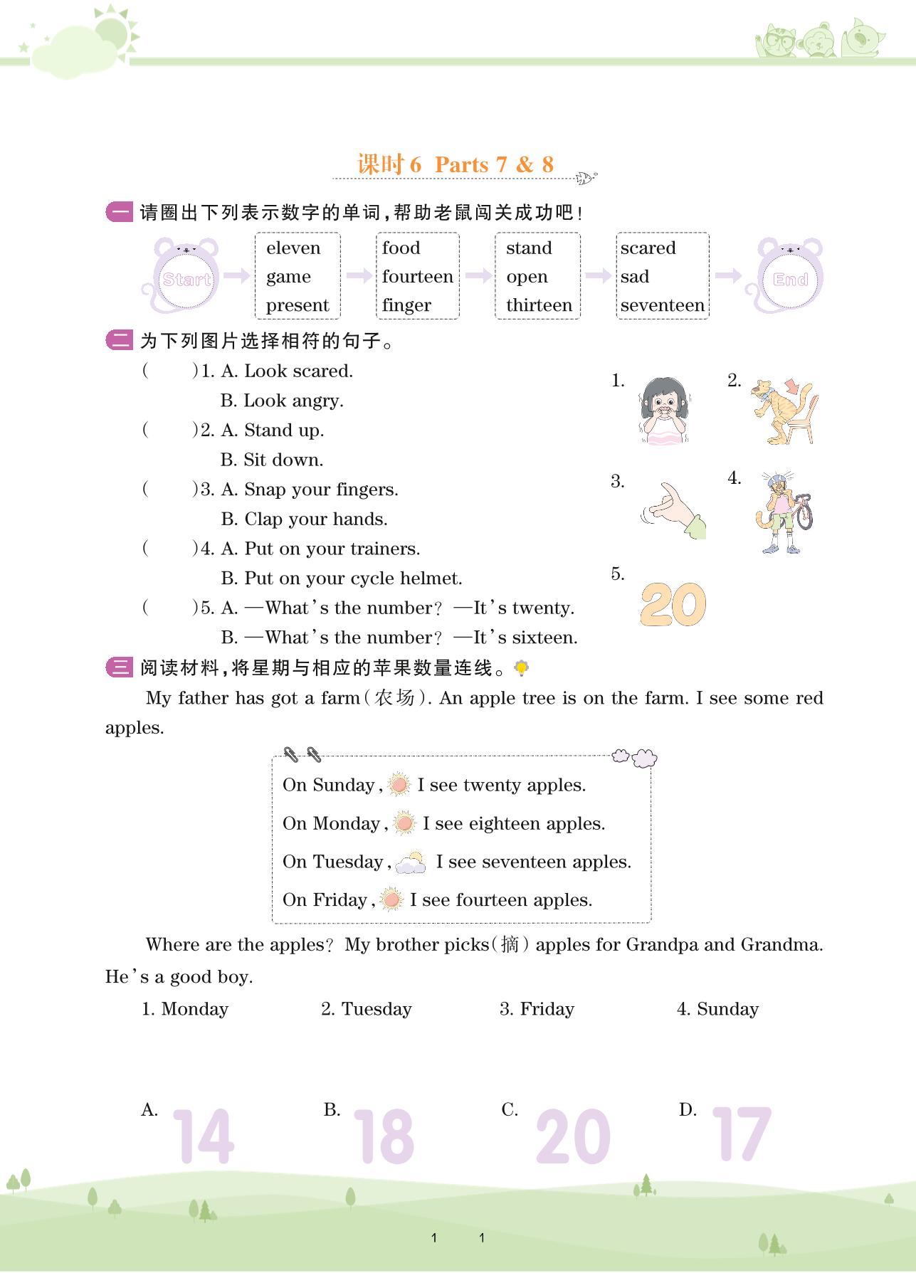 2021下册三年级英语剑桥版 Unit 4—课时6 Parts 7 & 8