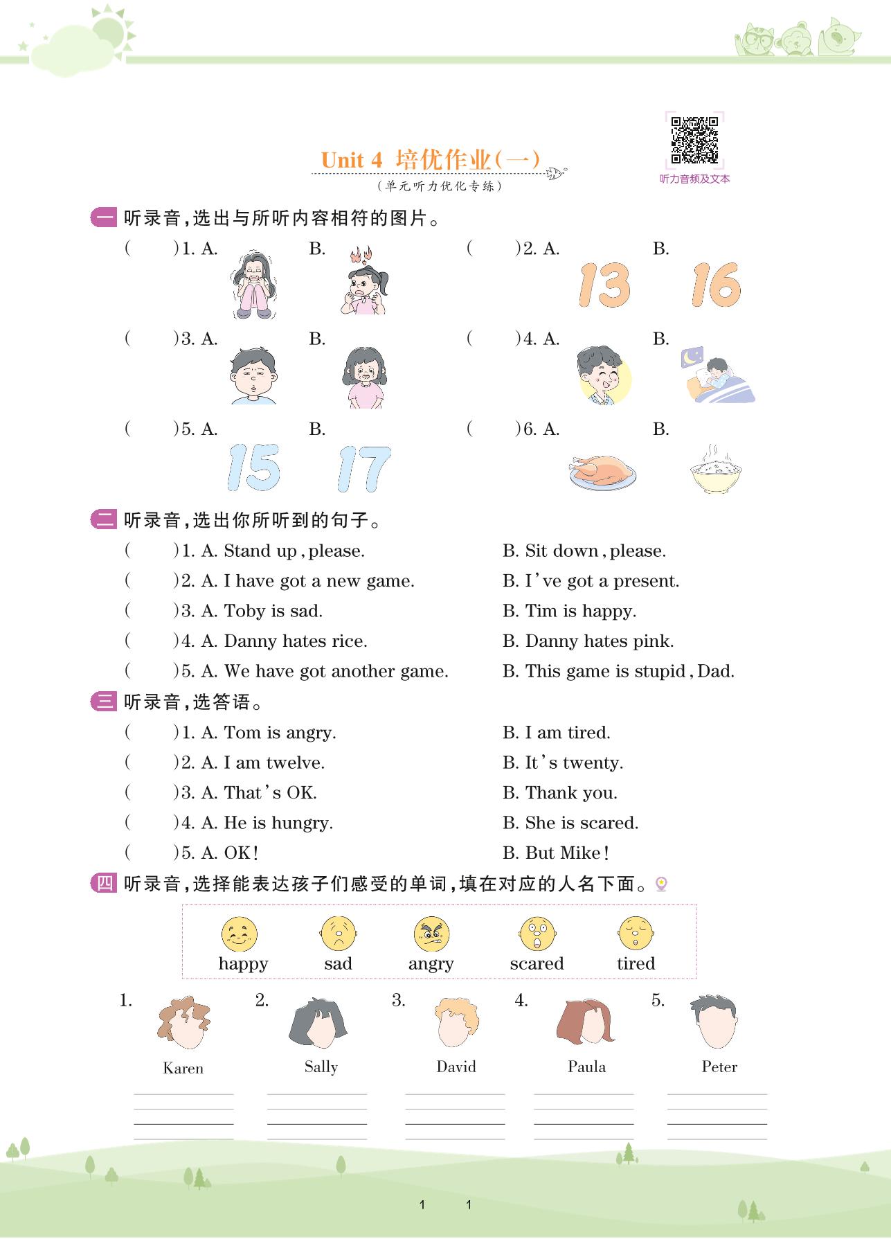 2021下册三年级英语剑桥版 Unit 4 培优作业(一)