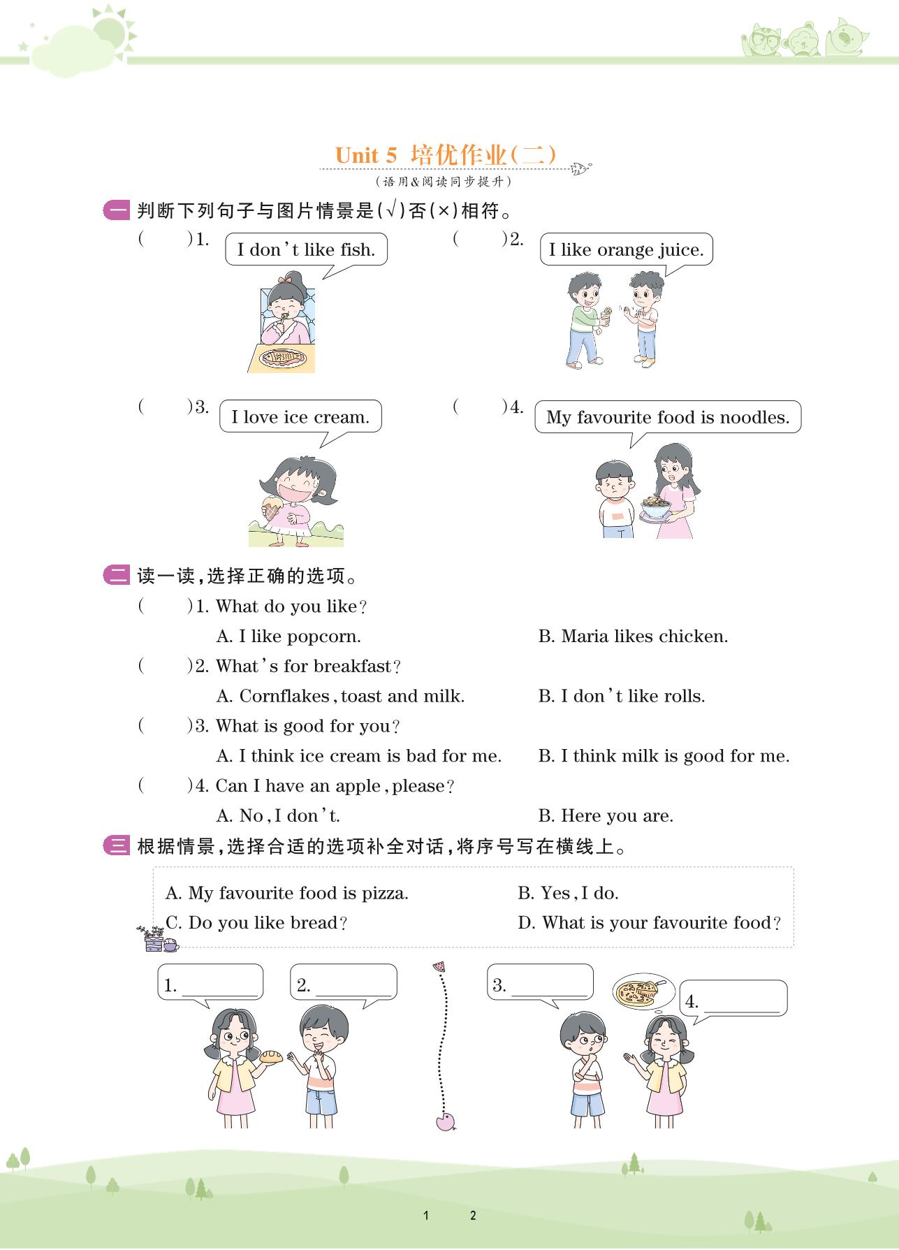 2021下册三年级英语剑桥版 Unit 5 培优作业(二)