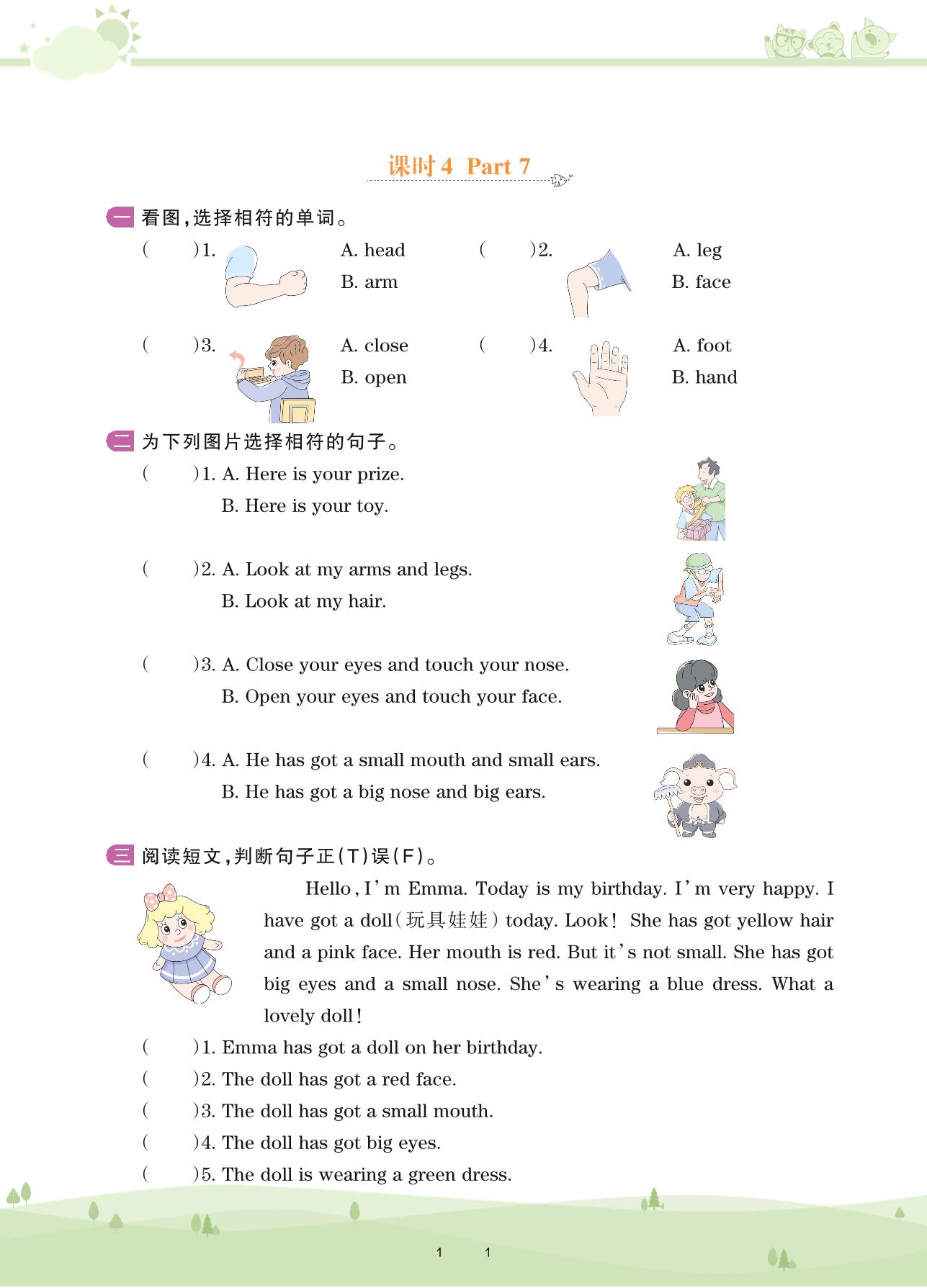 2021下册三年级英语剑桥版 Unit 6—课时4 Part 7