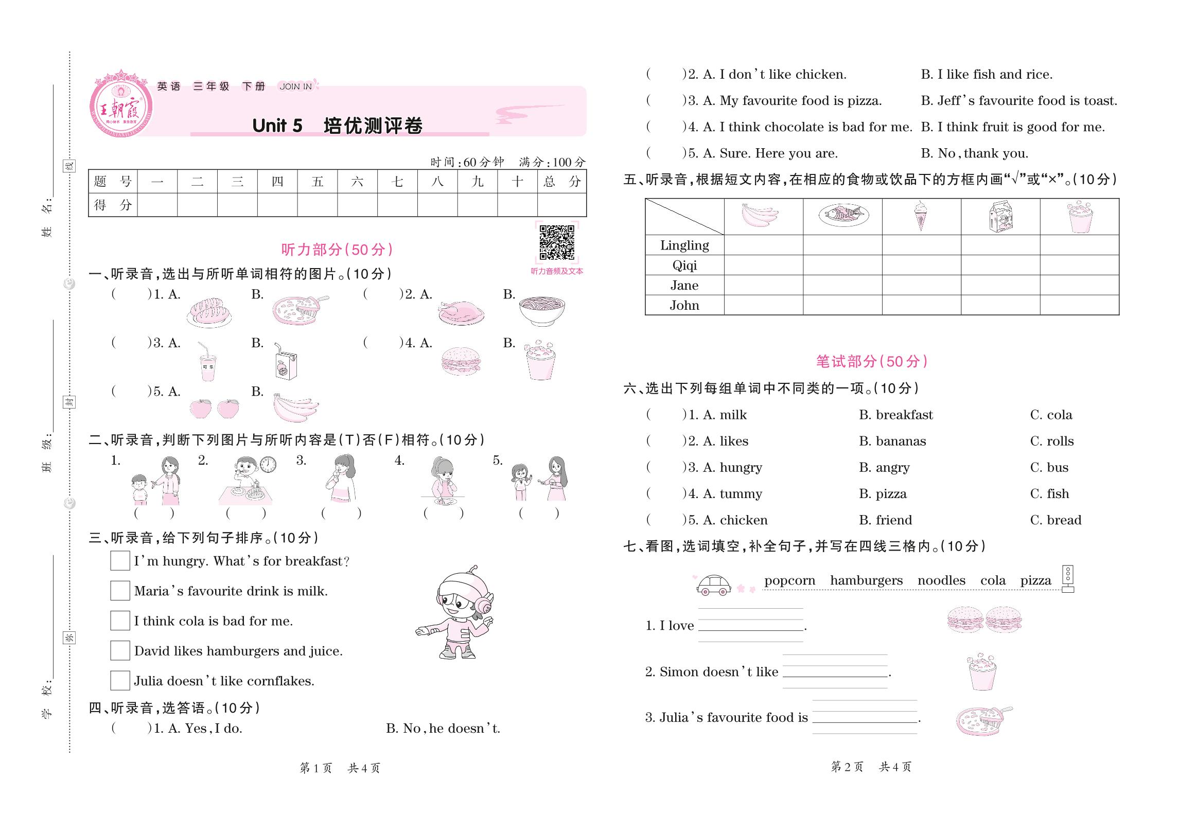 2021下册三年级英语剑桥版 Unit 5 培优测评卷
