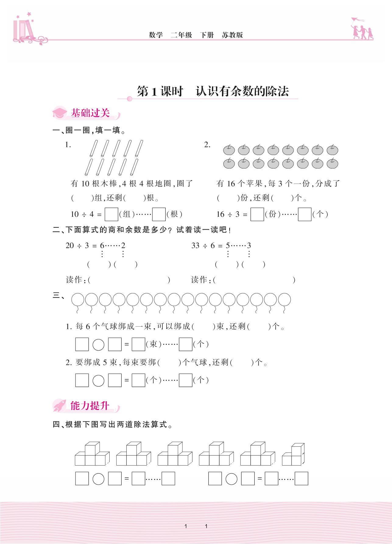 2021下册二年级数学苏教版 一 有余数的除法——第1课时 认识有余数的除法