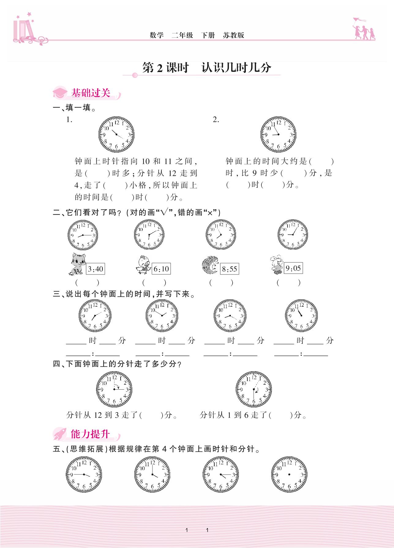 2021下册二年级数学苏教版 二 时、分、秒——第2课时 认识几时几分