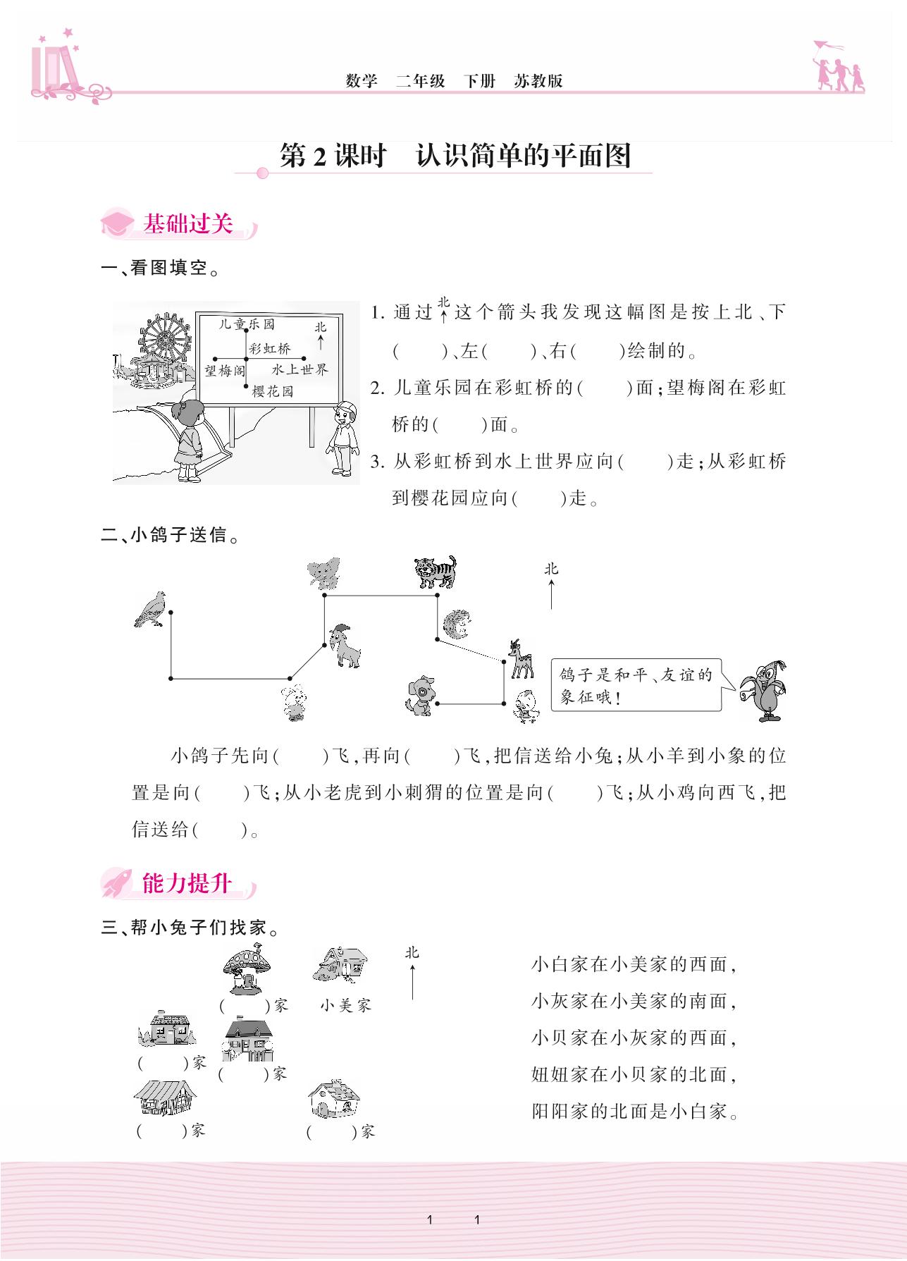 2021下册二年级数学苏教版 三 认识方向——第2课时 认识简单的平面图
