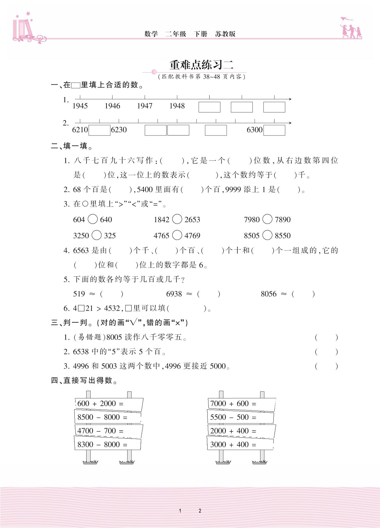 2021下册二年级数学苏教版 四 认识万以内的数——重难点练习二