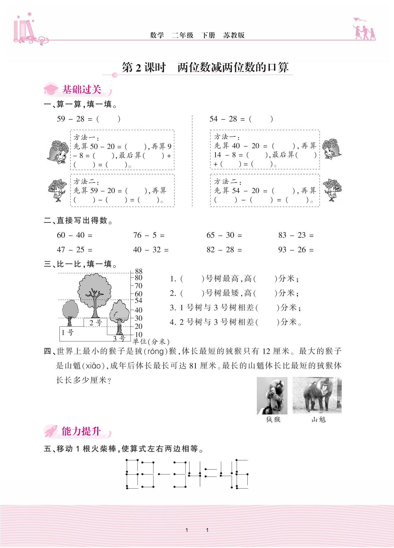 2021下册二年级数学苏教版 六 两、三位数的加法和减法——第2课时 两位数减两位数的口算