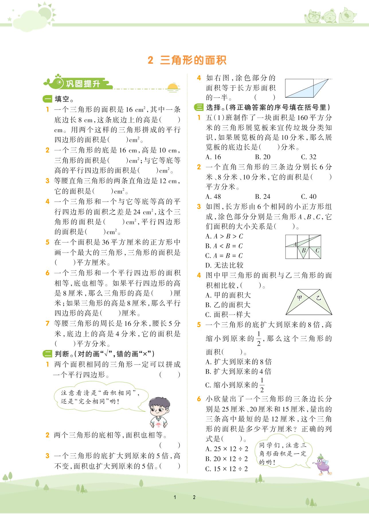 2020上册五年级数学苏教版 第二单元 多边形的面积——2 三角形的面积