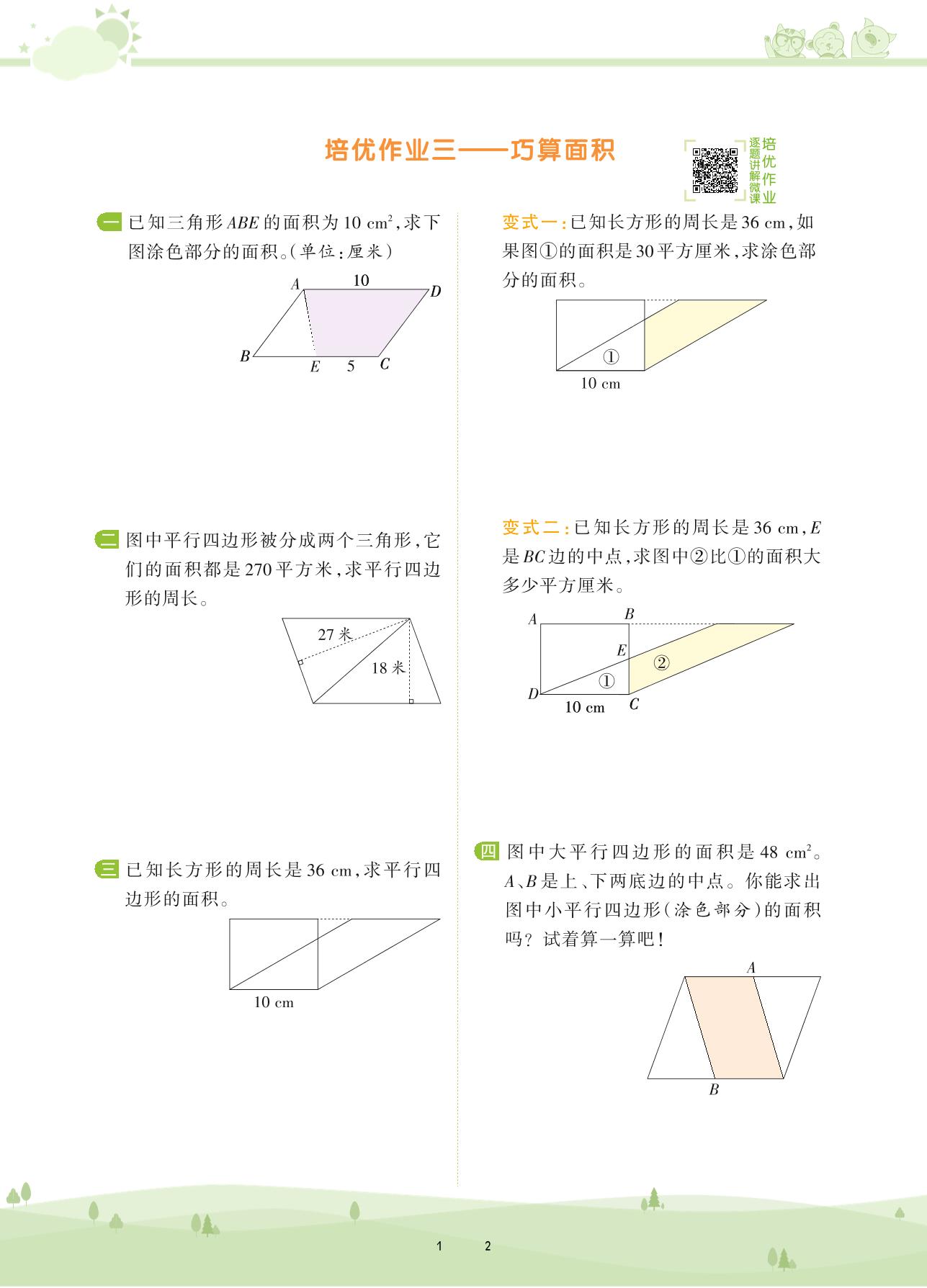 2020上册五年级数学苏教版 第二单元 多边形的面积——培优作业三 巧算面积