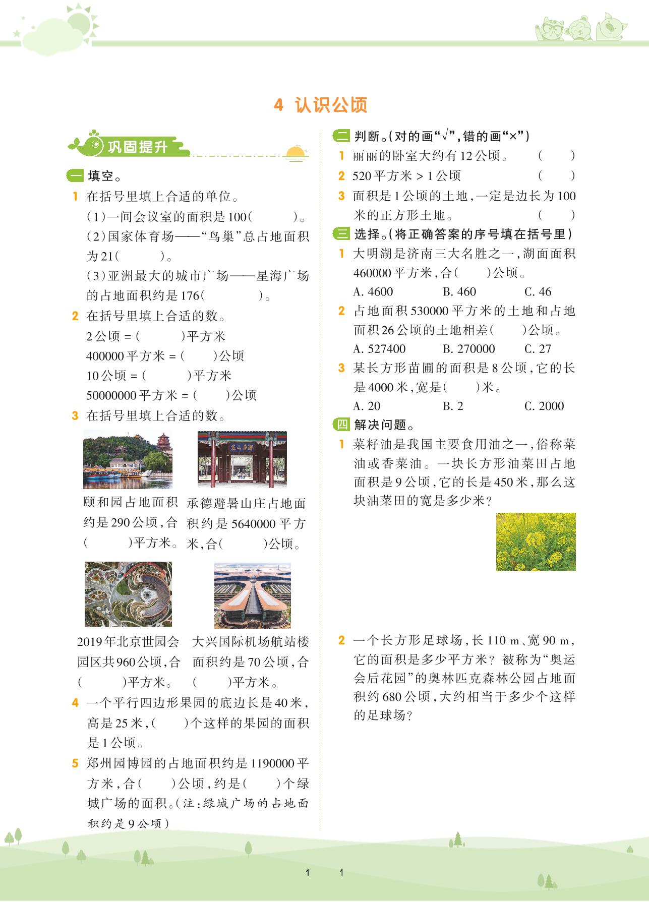 2020上册五年级数学苏教版 第二单元 多边形的面积——4 认识公顷