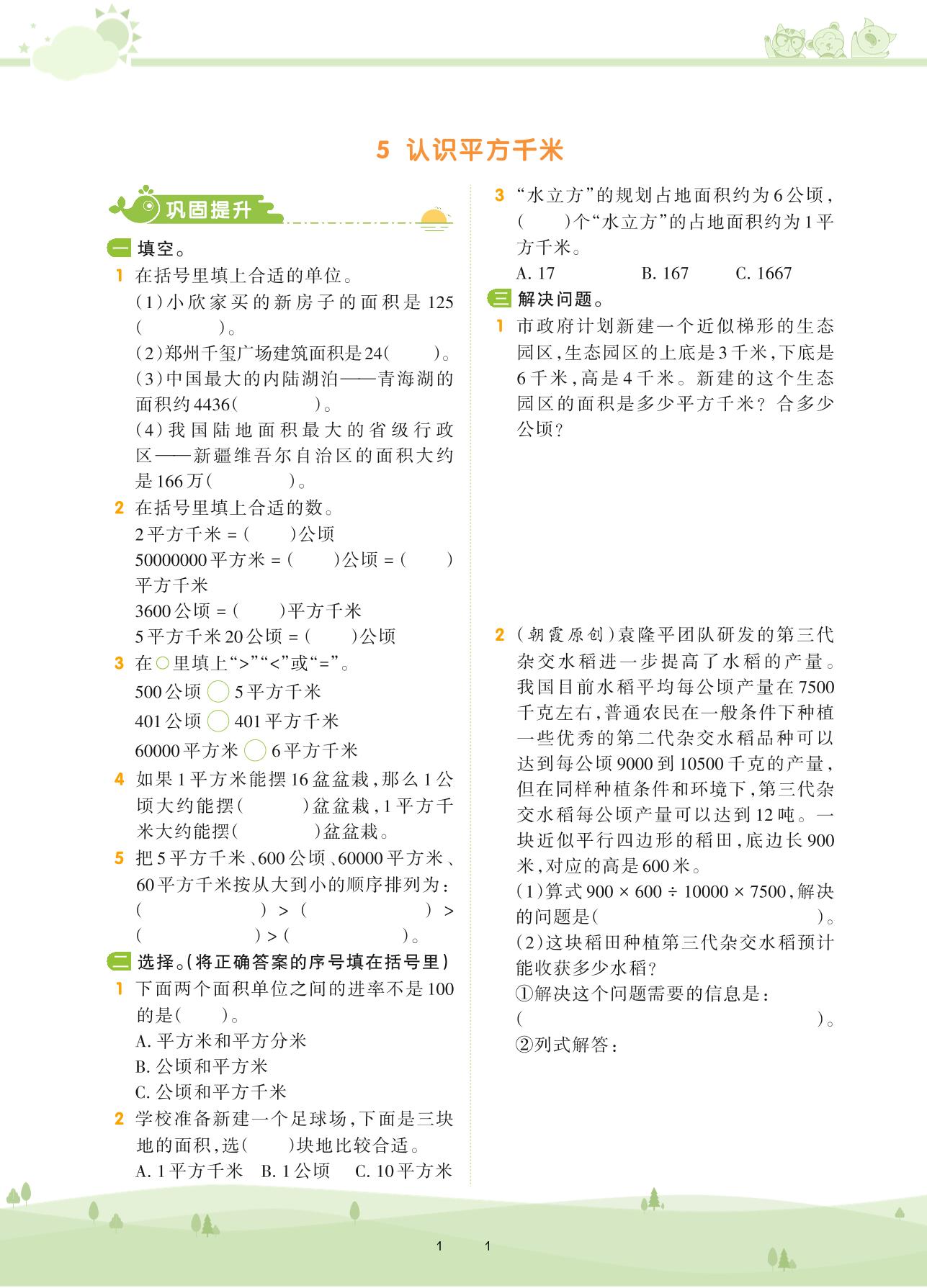 2020上册五年级数学苏教版 第二单元 多边形的面积——5 认识平方千米