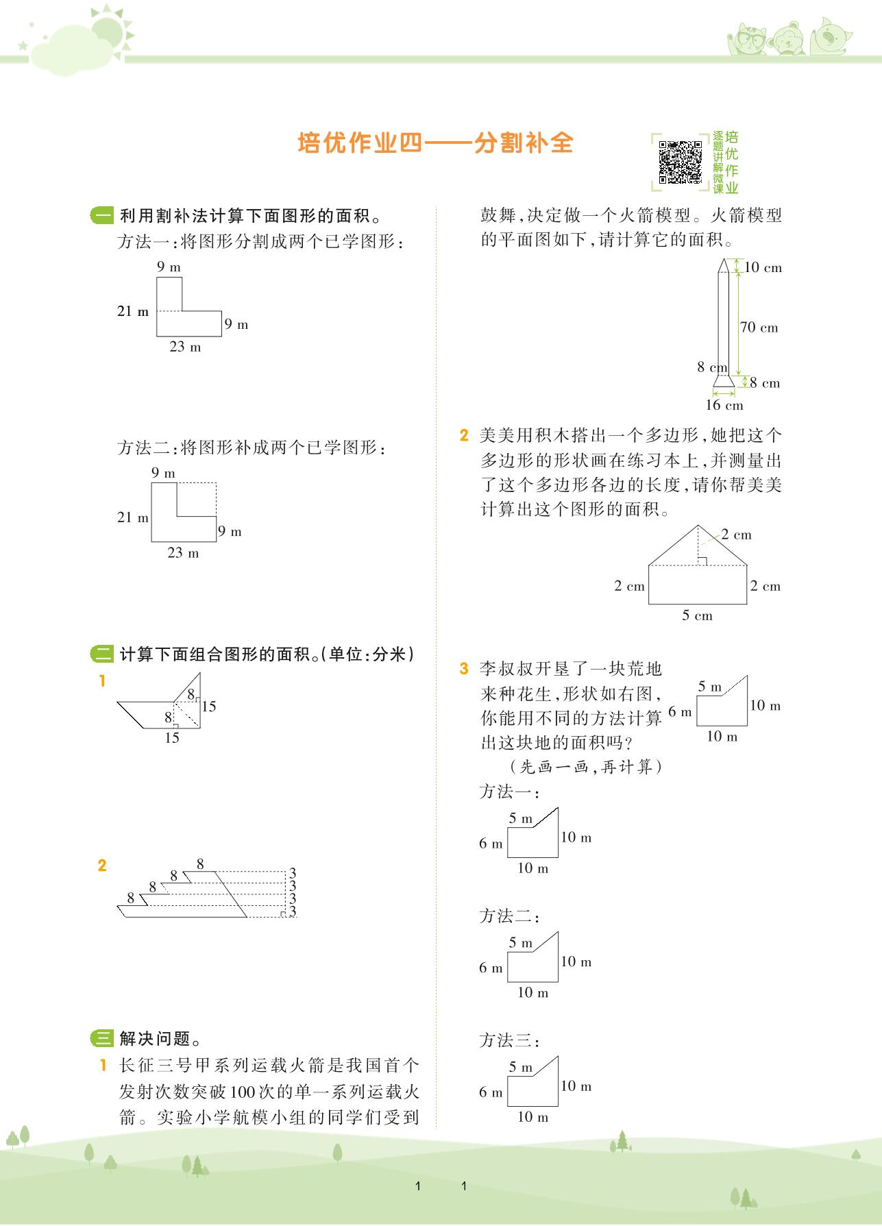 2020上册五年级数学苏教版 第二单元 多边形的面积——培优作业四 分割补全