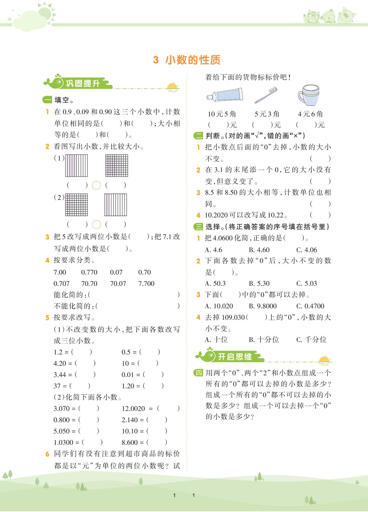 2020上册五年级数学苏教版 第三单元 小数的意义和性质——3 小数的性质