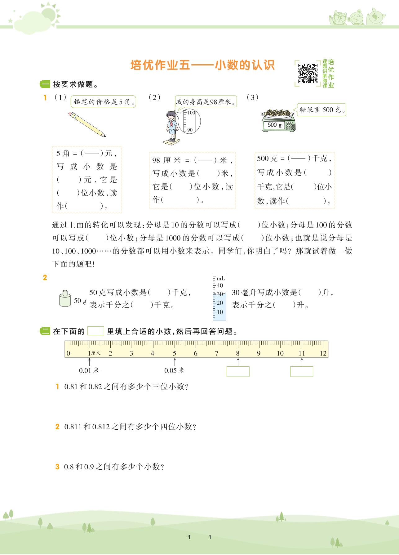 2020上册五年级数学苏教版 第三单元 小数的意义和性质——培优作业五 小数的认识