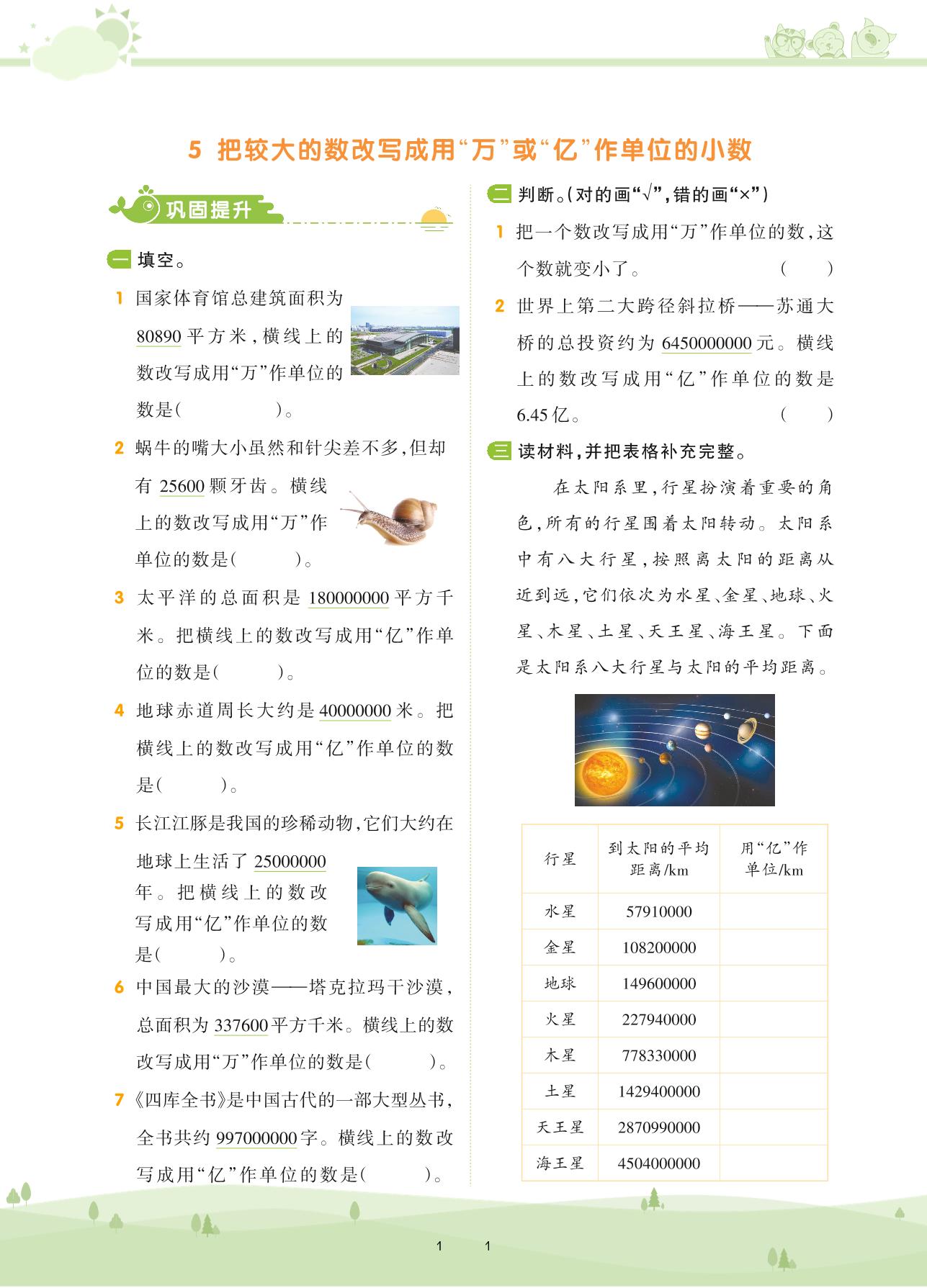 2020上册五年级数学苏教版 第三单元 小数的意义和性质——5 把较大的数改写成用“万”或“亿”作单位的小数