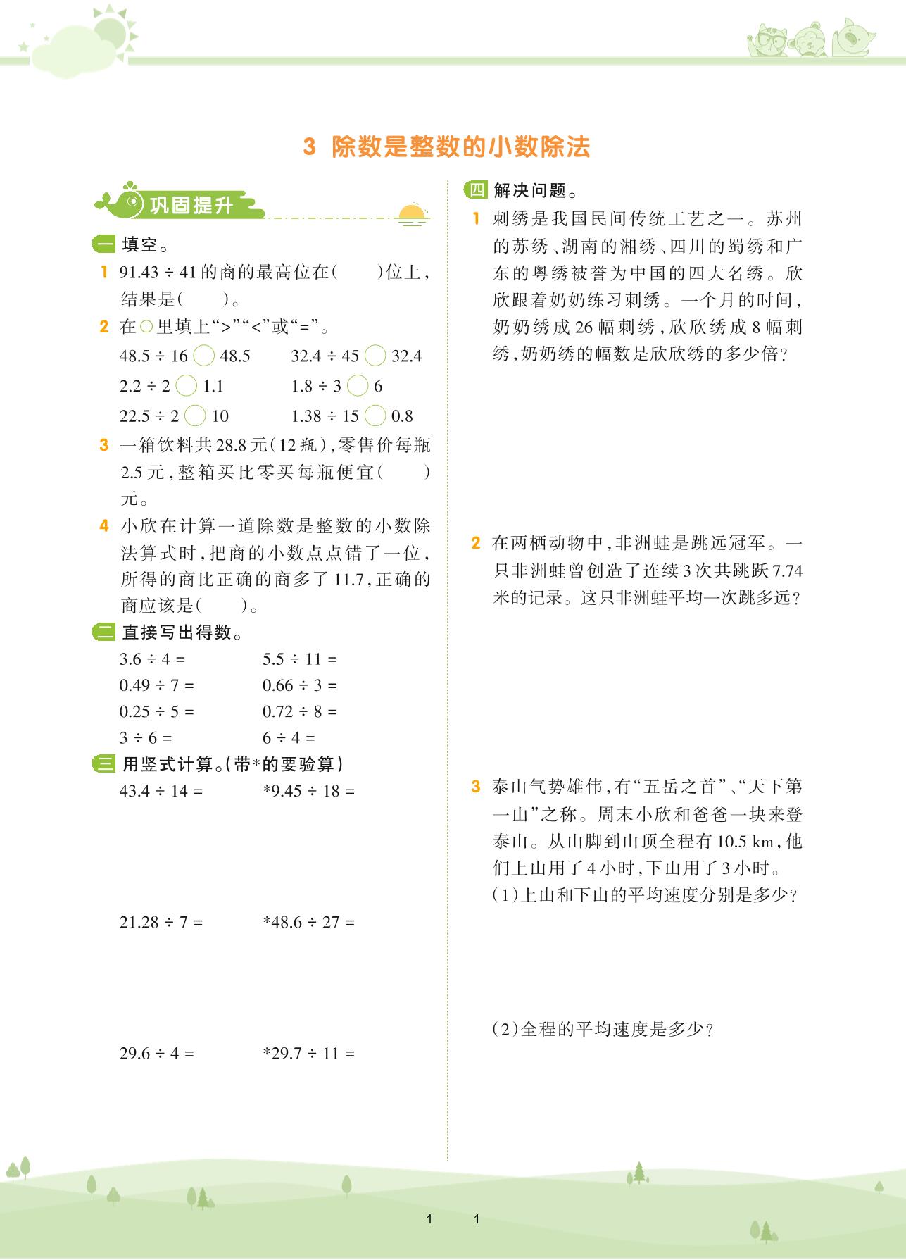 2020上册五年级数学苏教版 第五单元 小数乘法和除法——3 除数是整数的小数除法