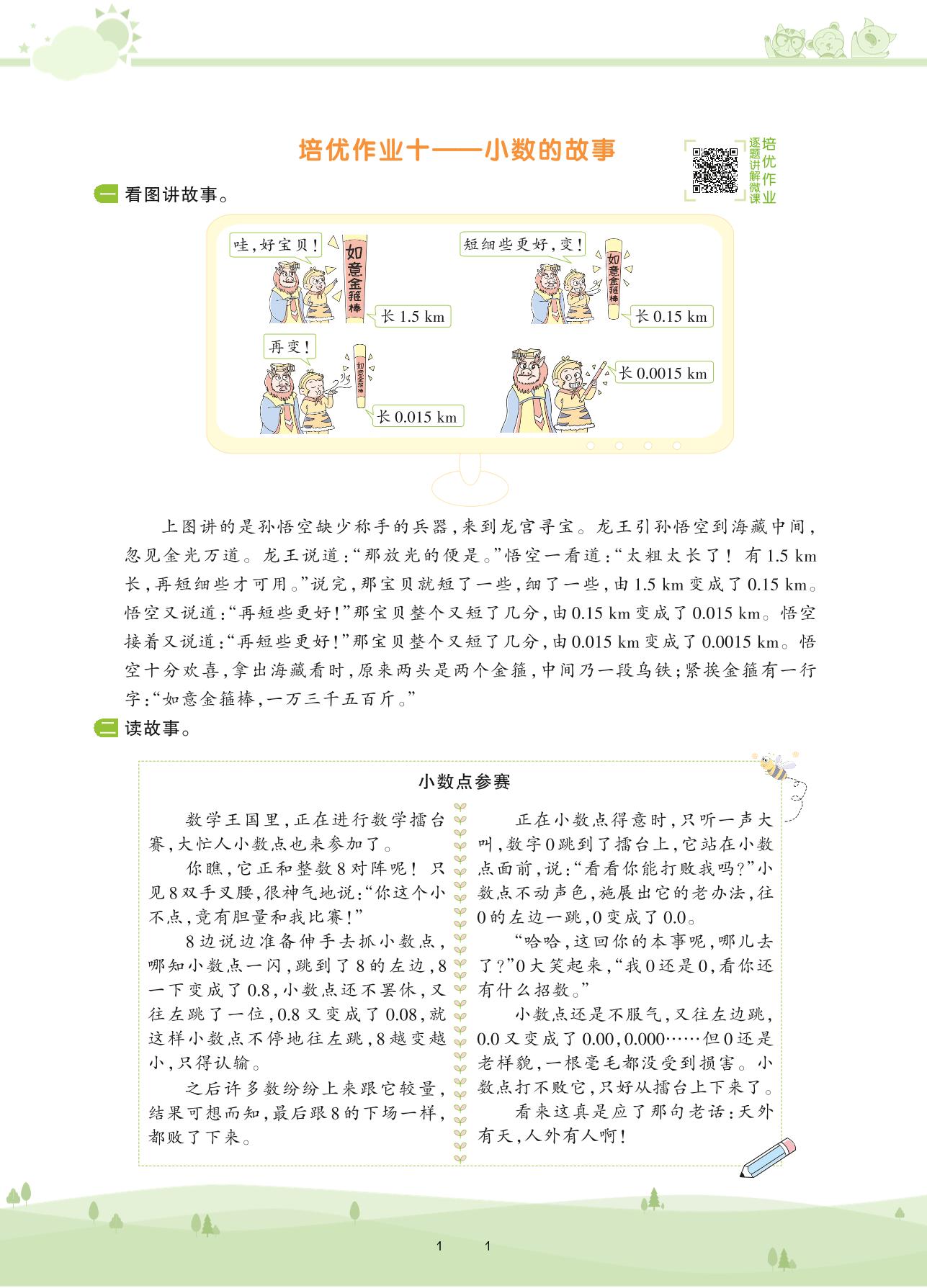 2020上册五年级数学苏教版 第五单元 小数乘法和除法——培优作业十 小数的故事