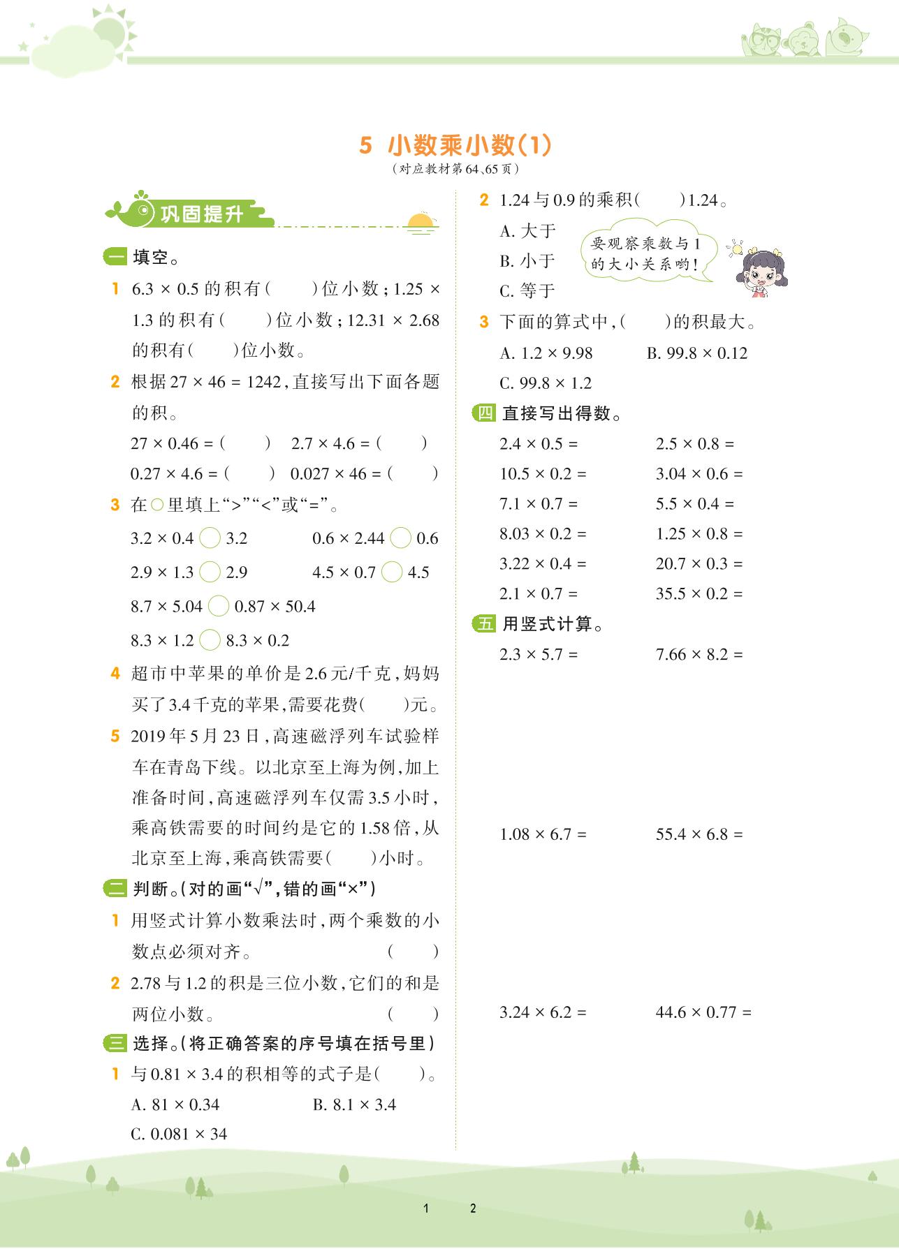 2020上册五年级数学苏教版 第五单元 小数乘法和除法——5 小数乘小数(1)