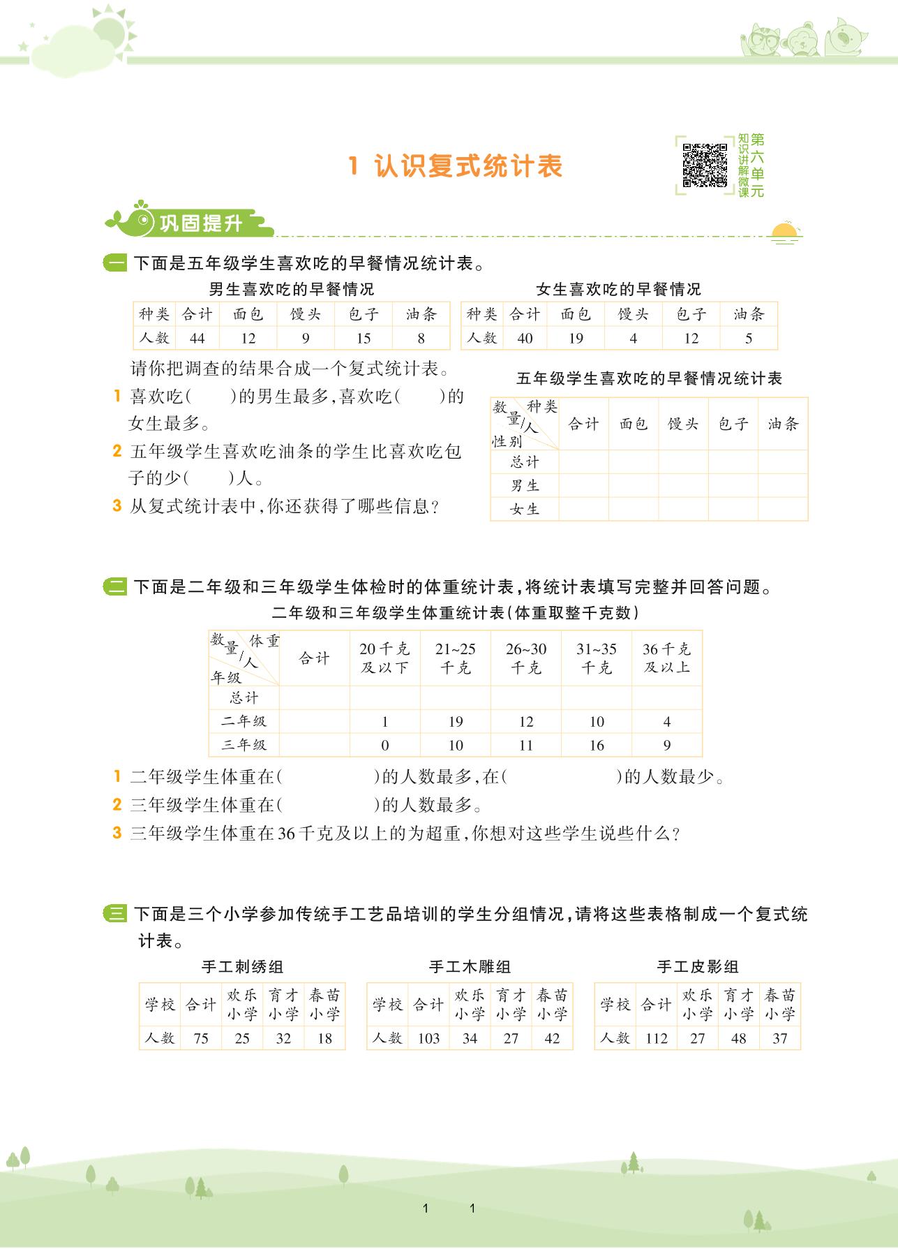 2020上册五年级数学苏教版 第六单元 统计表和条形统计图(二)——1 认识复式统计表