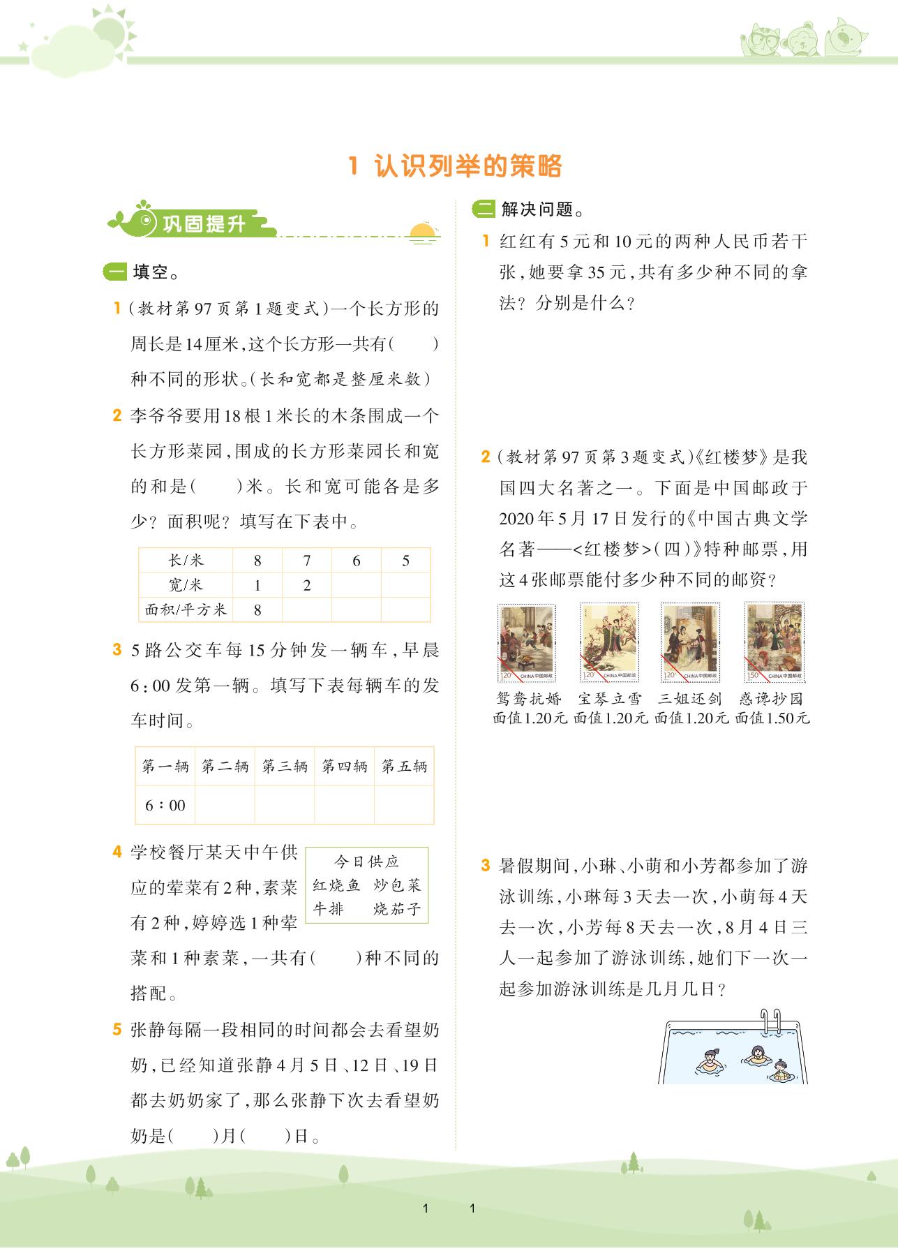 2020上册五年级数学苏教版 第七单元 解决问题的策略——1 认识列举的策略