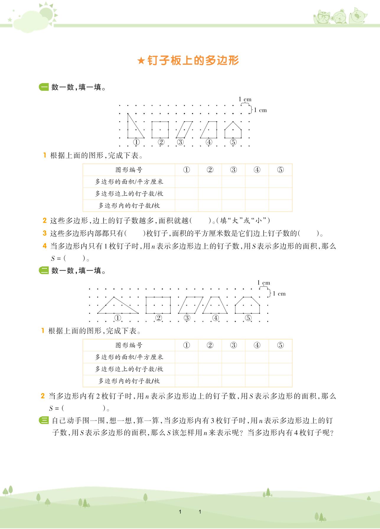 2020上册五年级数学苏教版 第八单元 用字母表示数——钉子板上的多边形