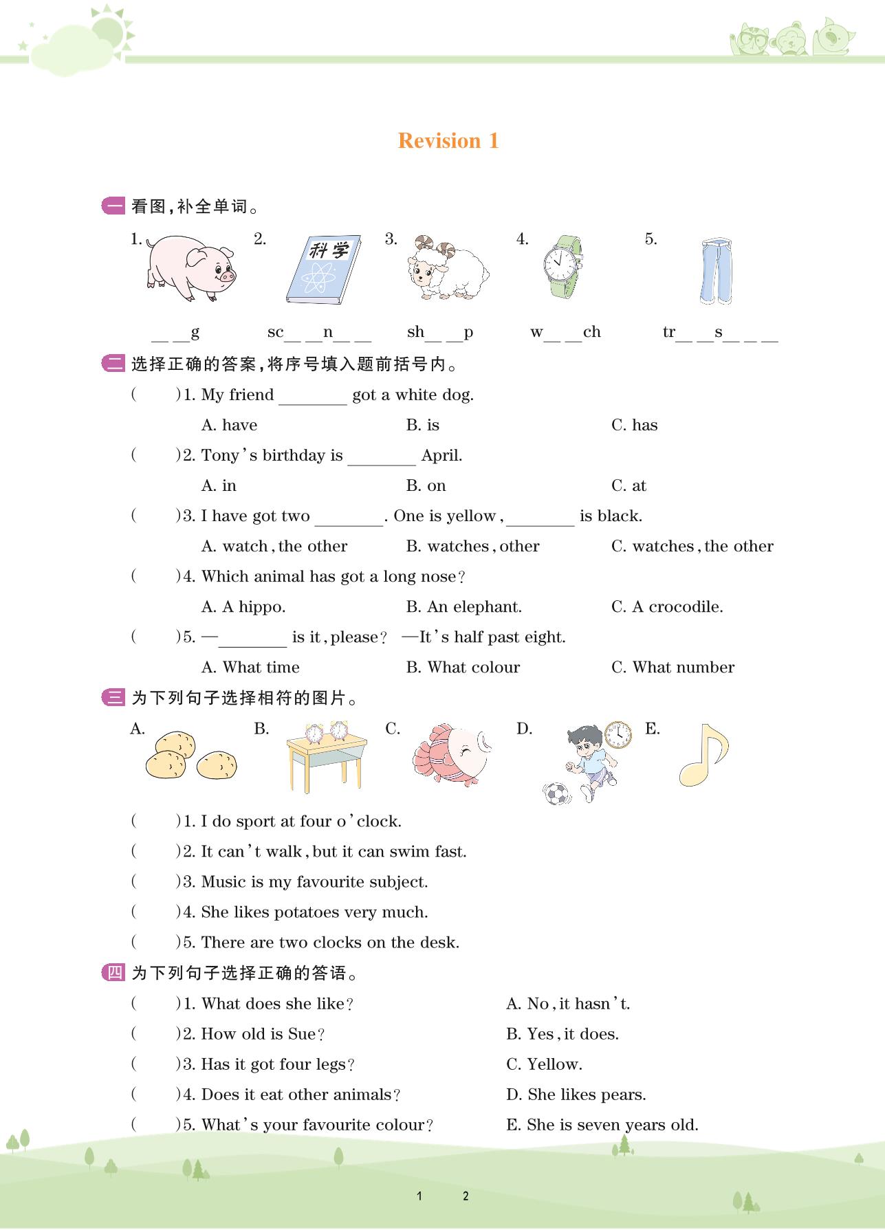2021下册四年级英语剑桥版 Revision 1