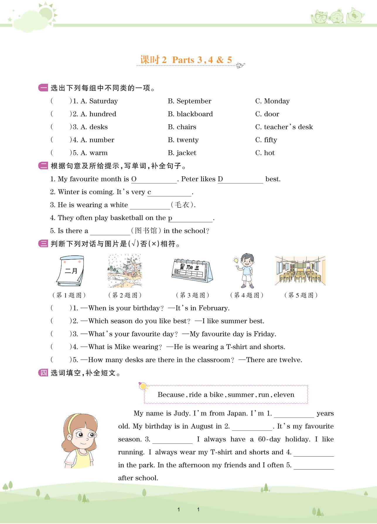 2021下册四年级英语剑桥版 Starter unit Join us—课时 2 Parts 3,4 & 5