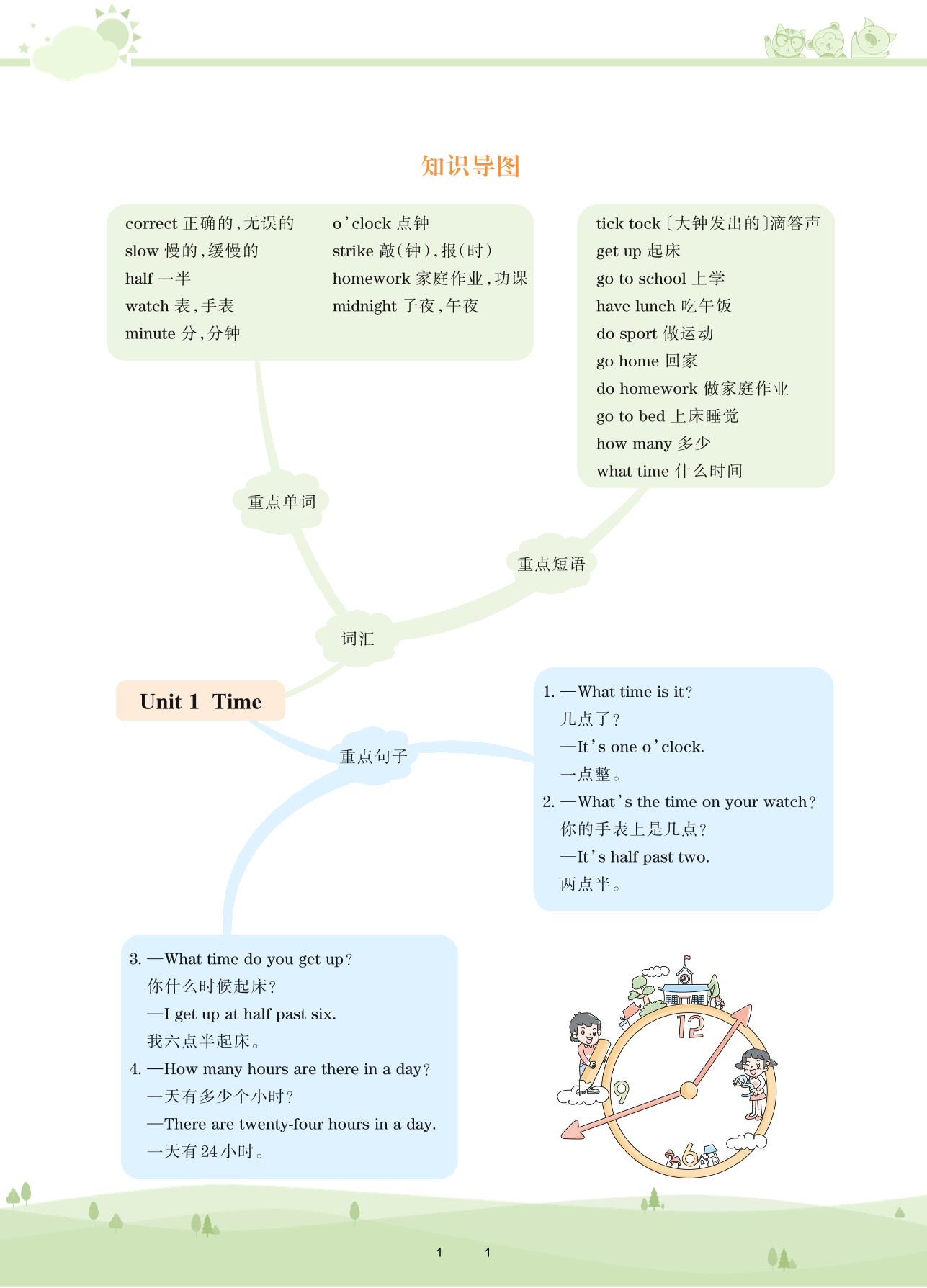 2021下册四年级英语剑桥版 Unit 1 知识导图
