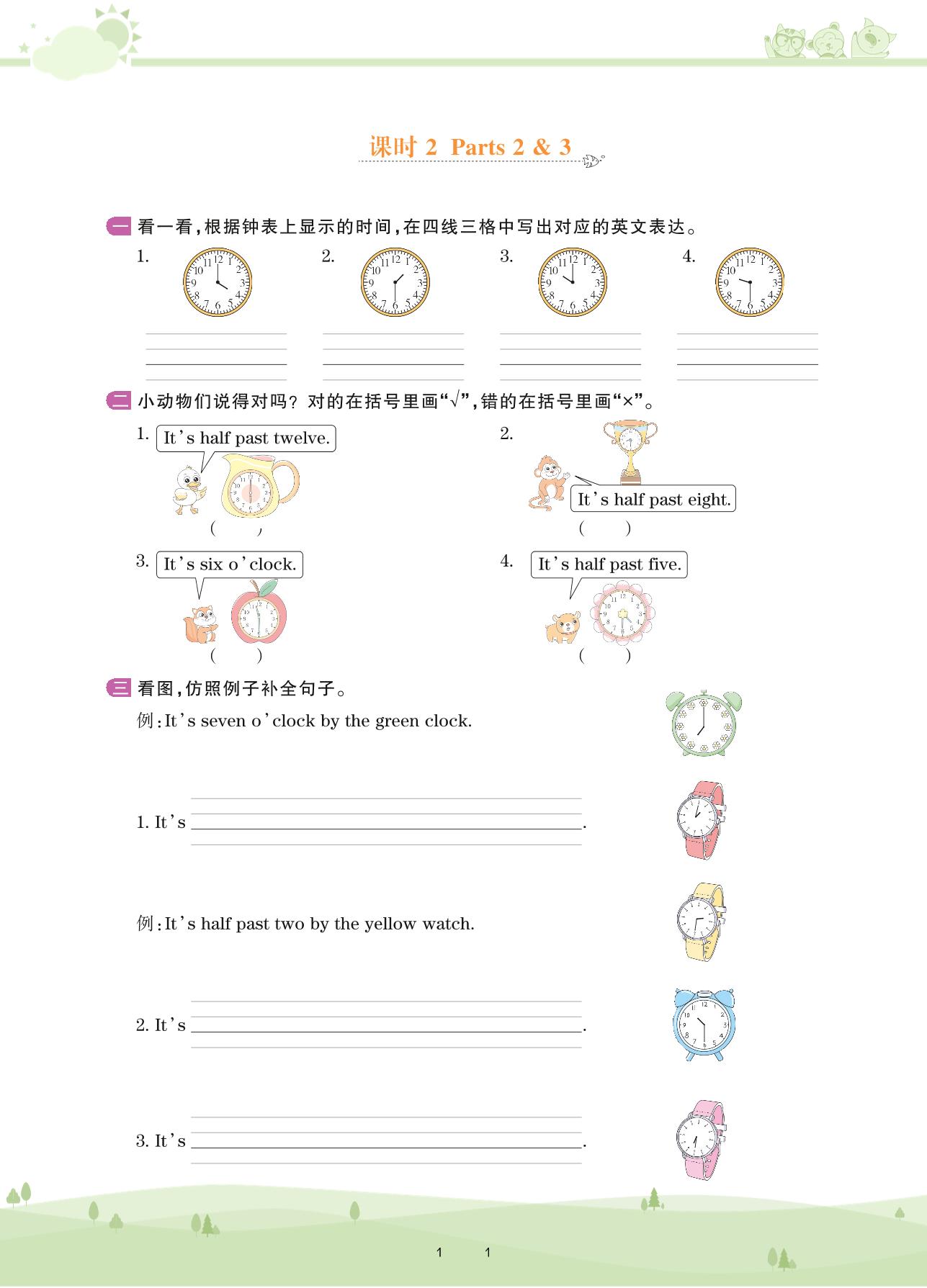 2021下册四年级英语剑桥版 Unit 1—课时 2 Parts 2 & 3