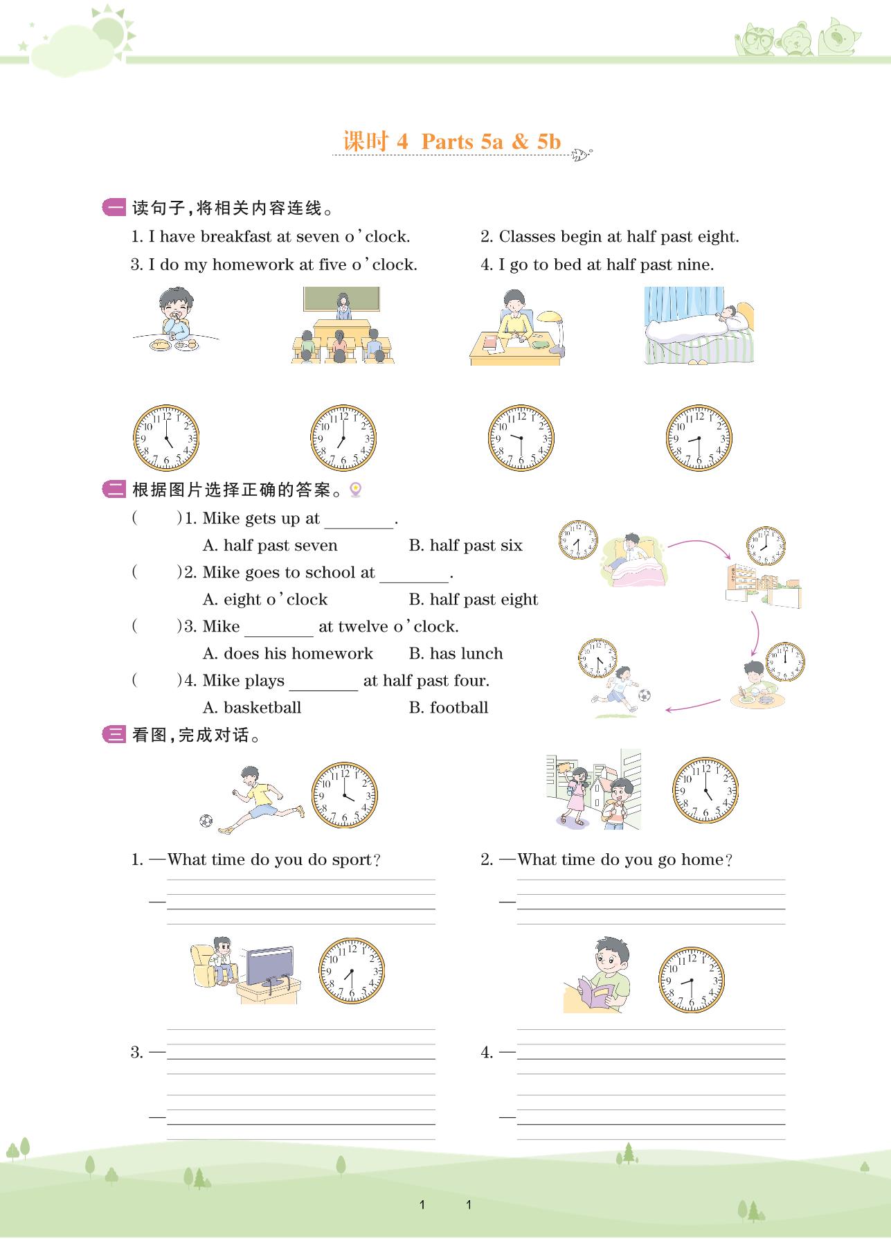 2021下册四年级英语剑桥版 Unit 1—课时 4 Parts 5a & 5b