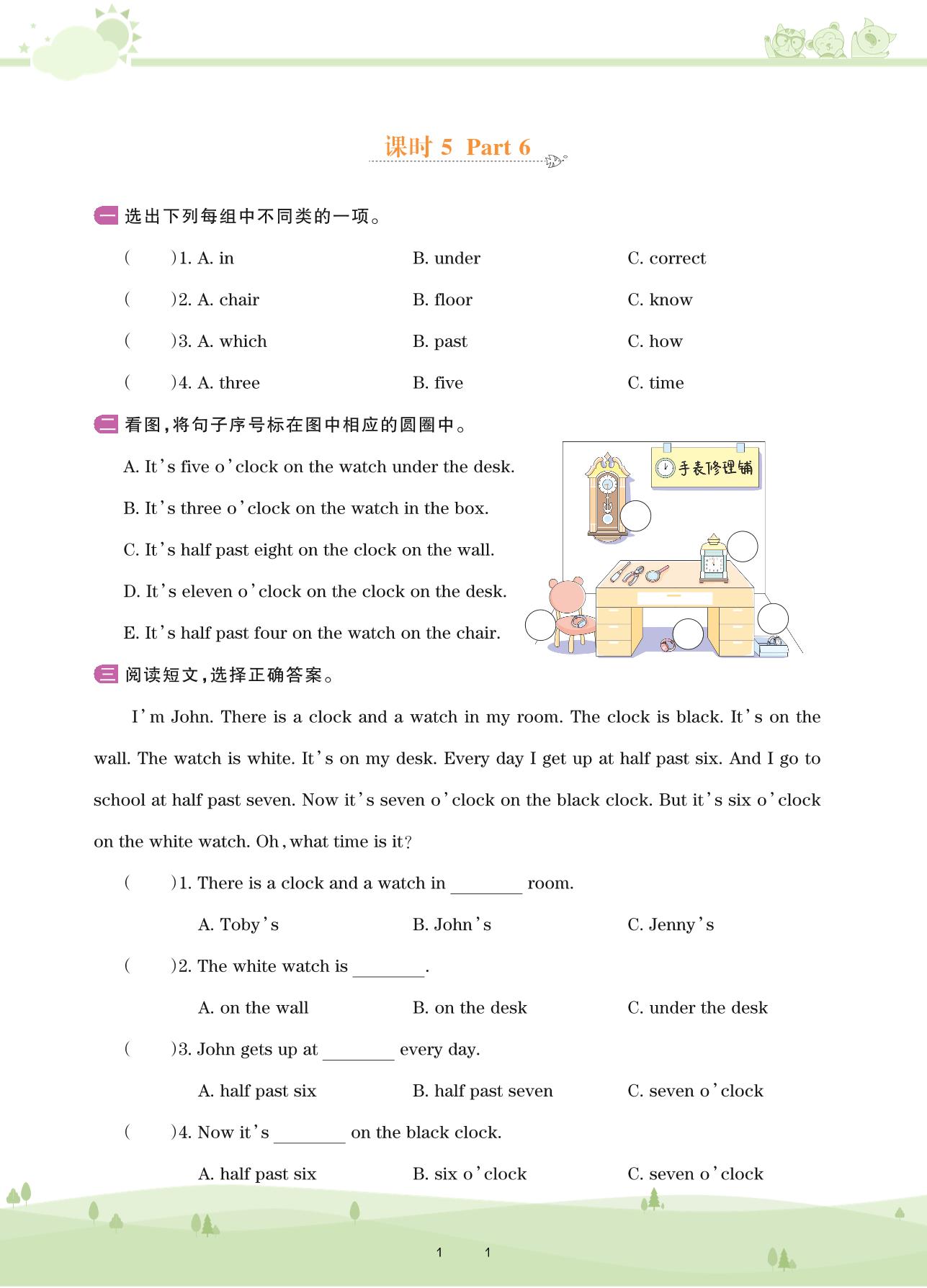 2021下册四年级英语剑桥版 Unit 1—课时 5 Part 6