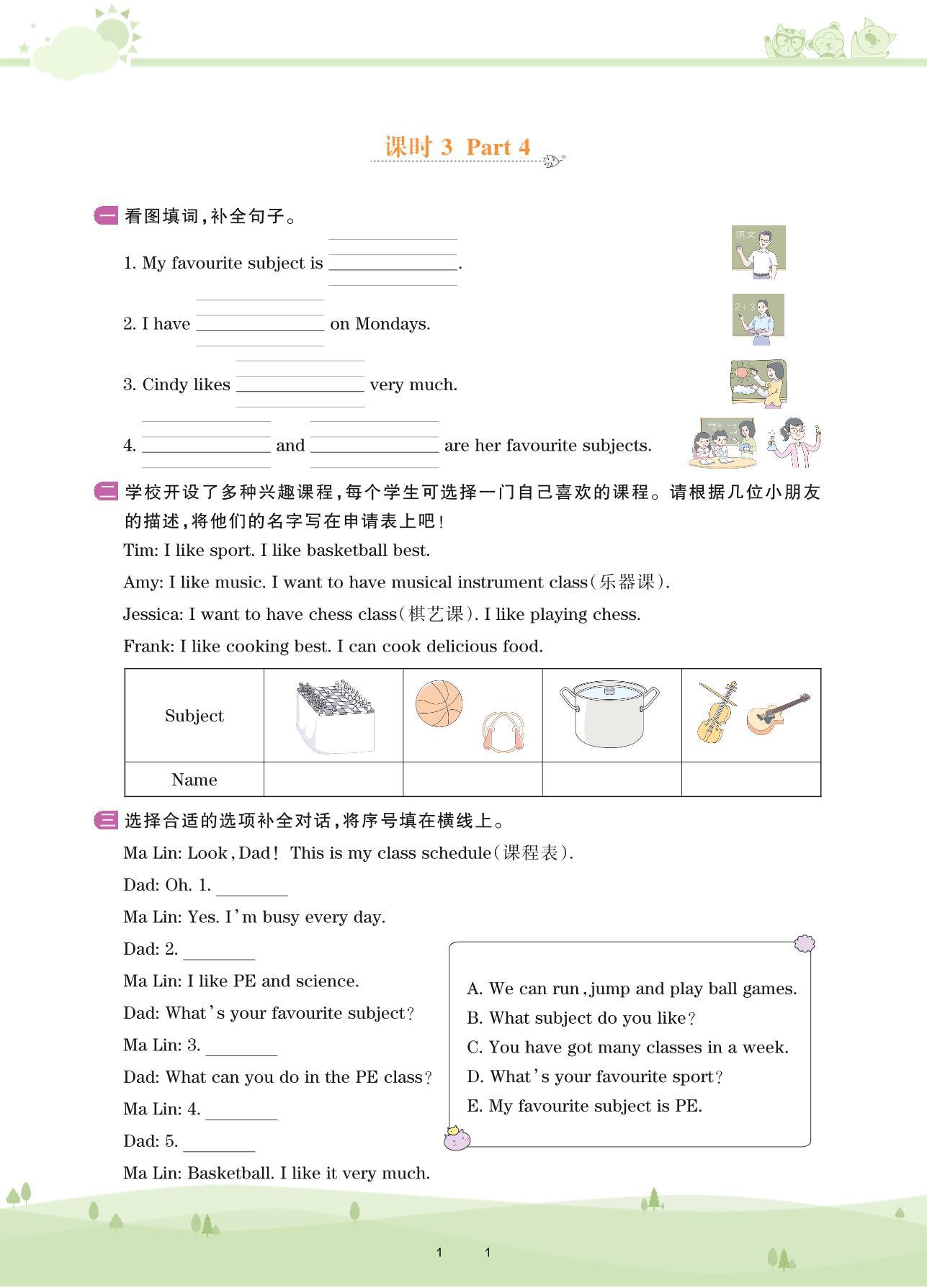 2021下册四年级英语剑桥版 Unit 2—课时 3 Part 4