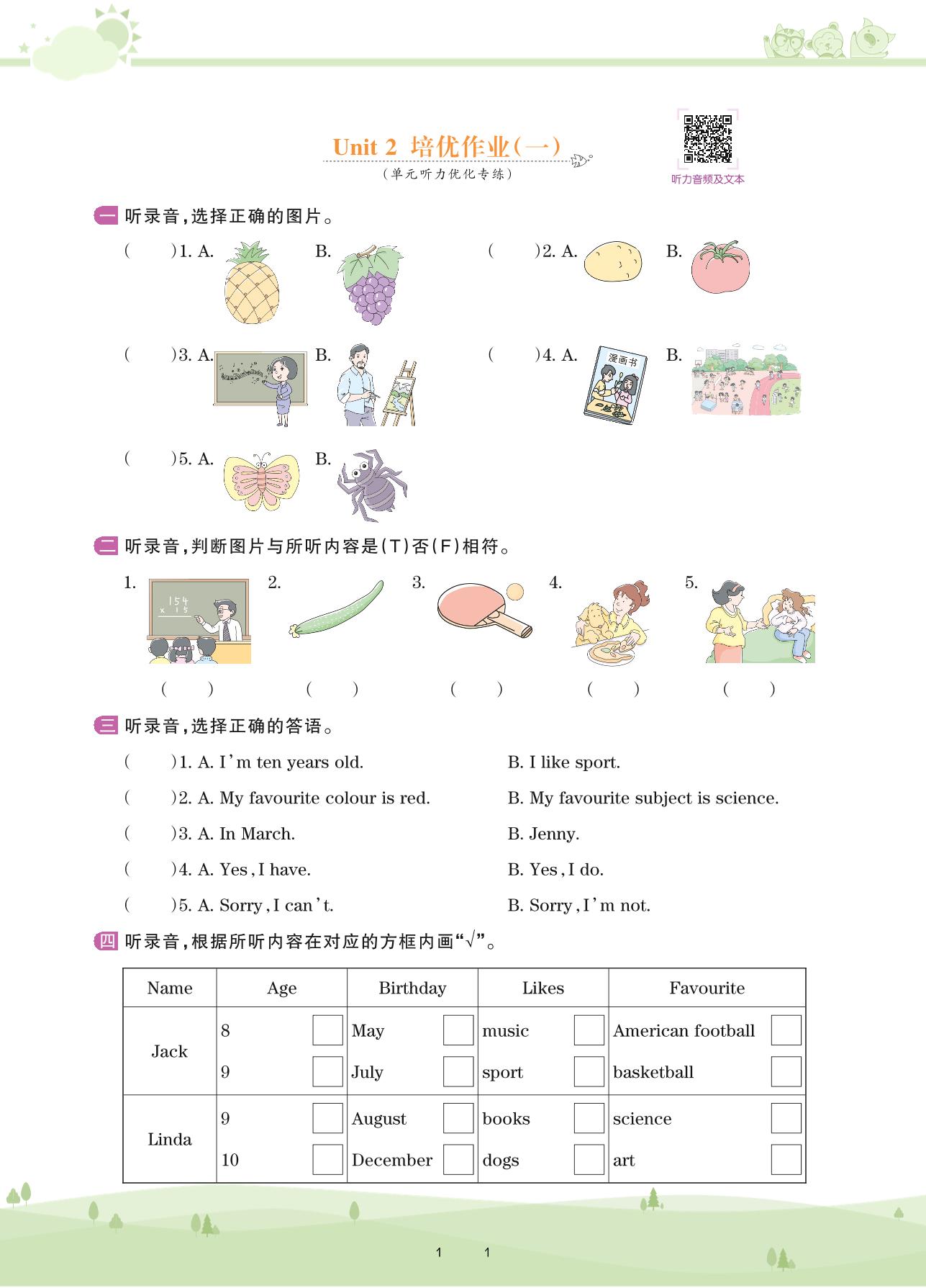2021下册四年级英语剑桥版 Unit 2 培优作业(一)