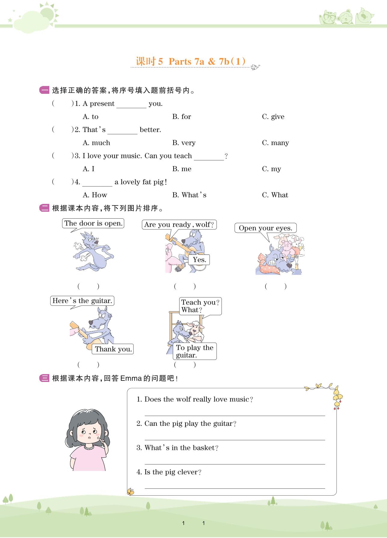 2021下册四年级英语剑桥版 Unit 3—课时 5 Parts 7a & 7b(1)