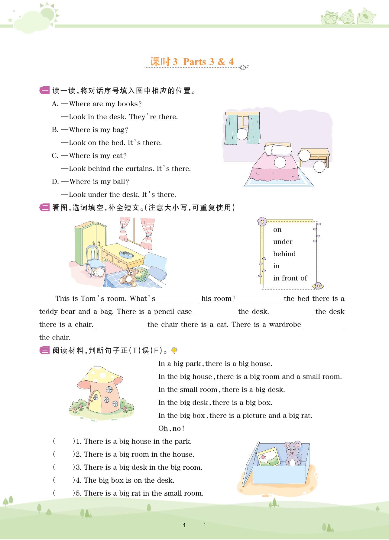 2021下册四年级英语剑桥版 Unit 4—课时 3 Parts 3 & 4