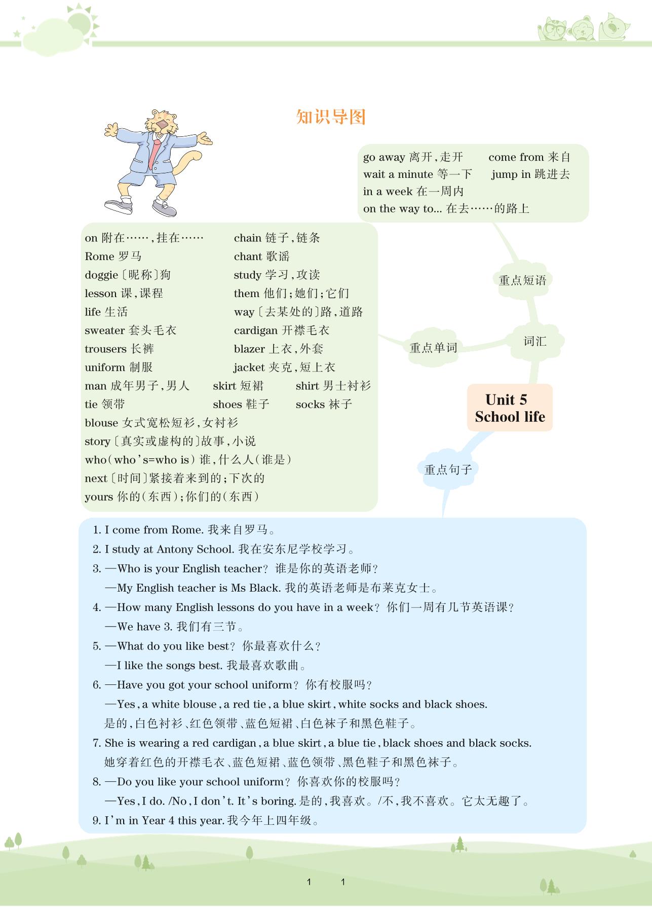 2021下册四年级英语剑桥版 Unit 5 知识导图