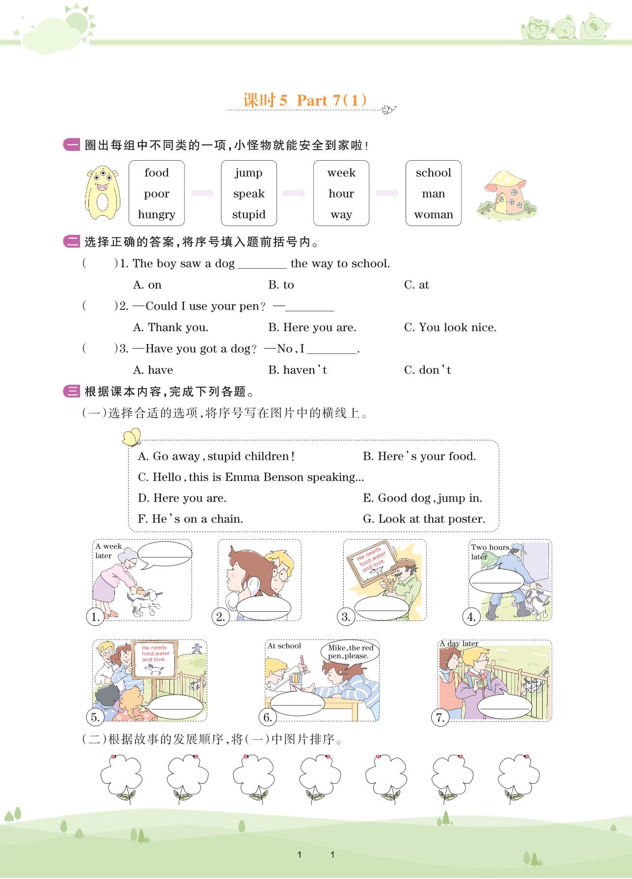 2021下册四年级英语剑桥版 Unit 5—课时 5 Part 7(1)