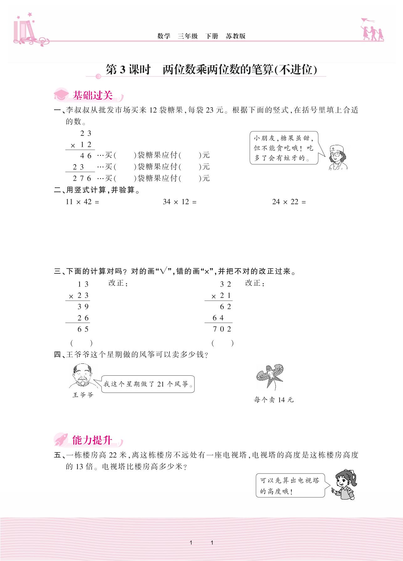 2021下册三年级数学苏教版 一 两位数乘两位数——第3课时 两位数乘两位数的笔算(不进位)