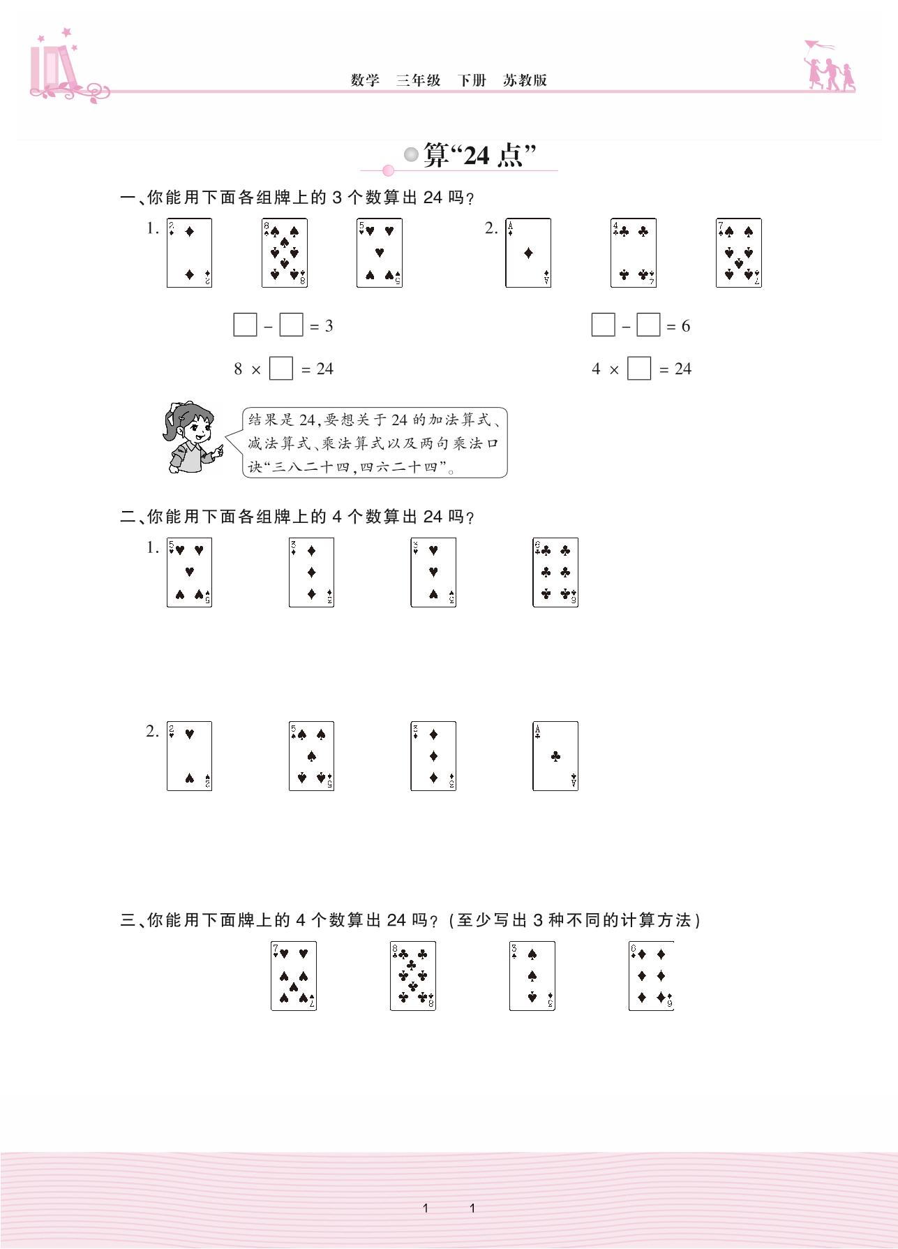 2021下册三年级数学苏教版 四 混合运算——算“24点”