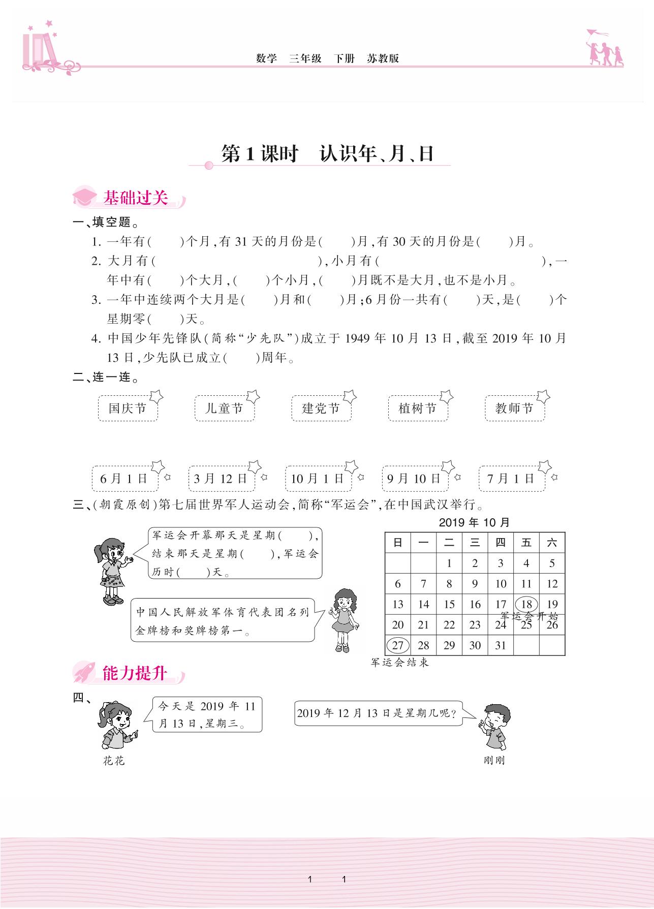 2021下册三年级数学苏教版 五 年、月、日——第1课时 认识年、月、日