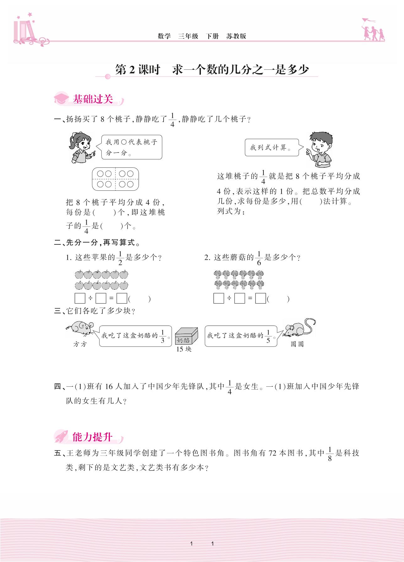 2021下册三年级数学苏教版 七 分数的初步认识(二)——第2课时 求一个数的几分之一是多少