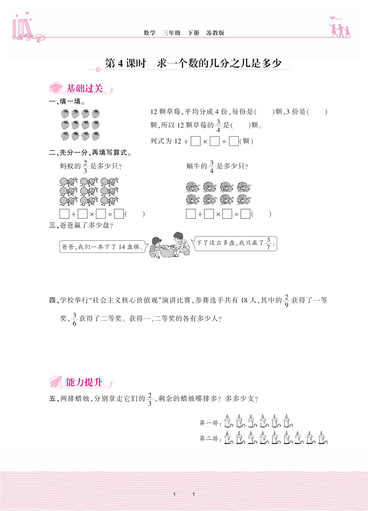 2021下册三年级数学苏教版 七 分数的初步认识(二)——第4课时 求一个数的几分之几是多少