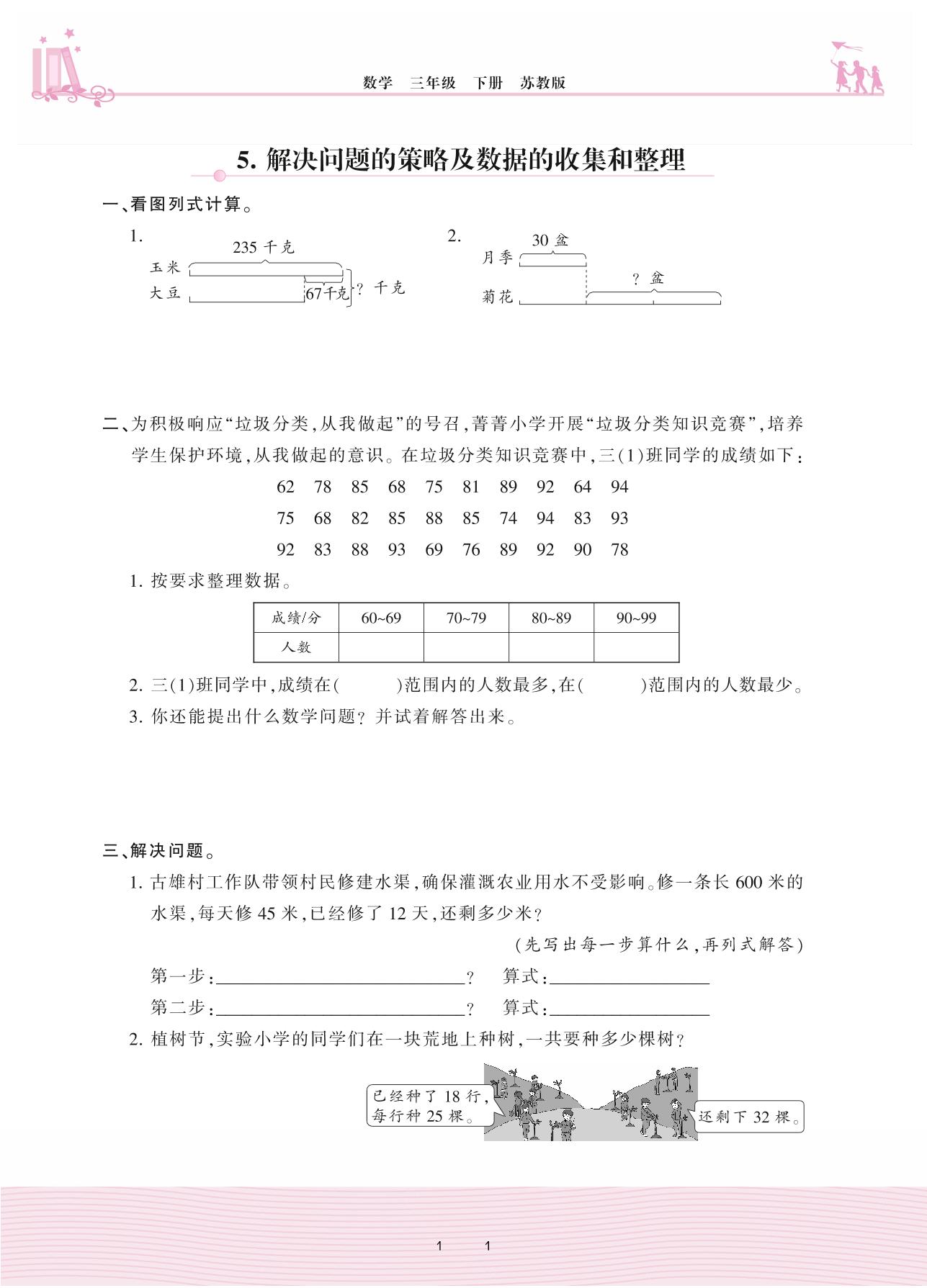 2021下册三年级数学苏教版 十 期末复习——5. 解决问题的策略及数据的收集和整理