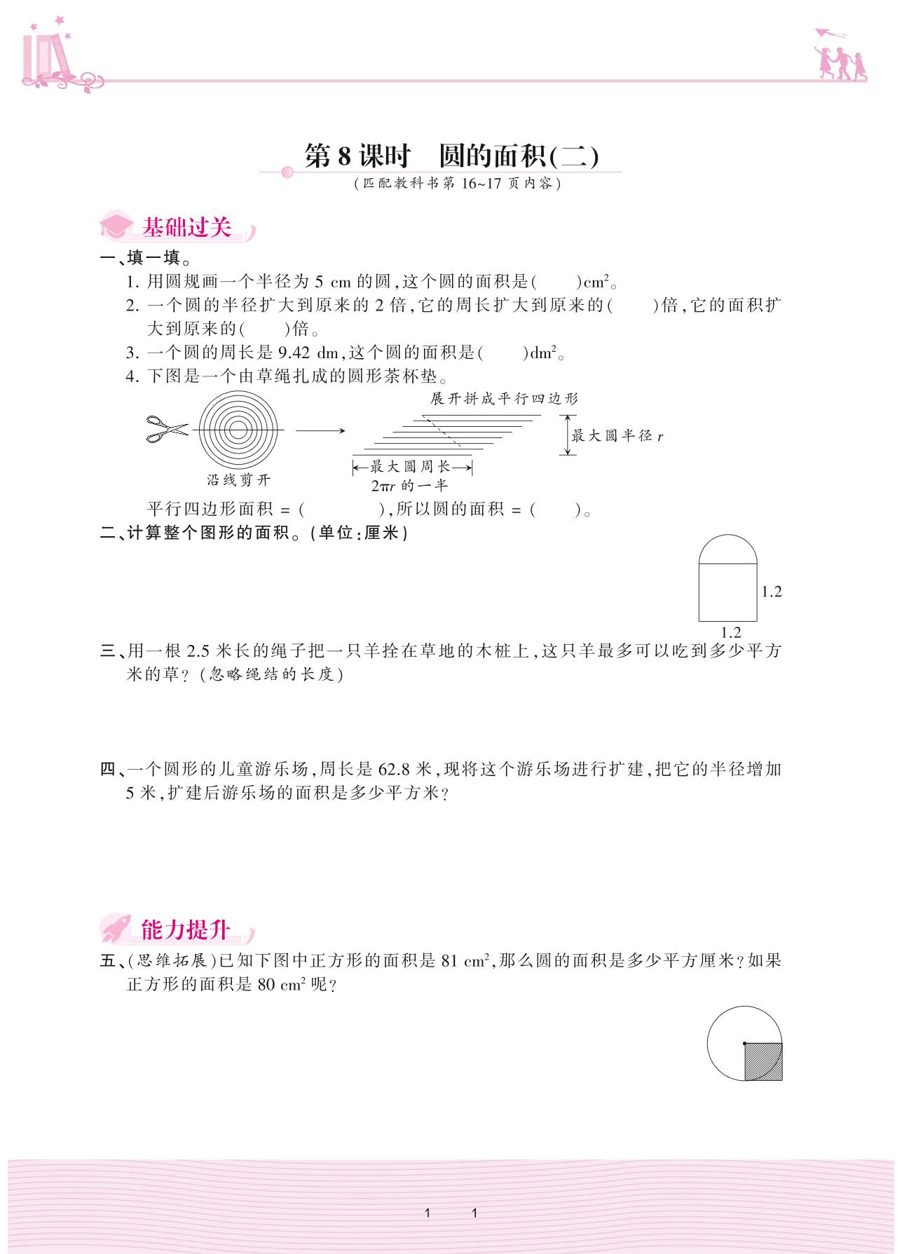 2020上册六年级数学北师版 一 圆——第8课时 圆的面积(二)