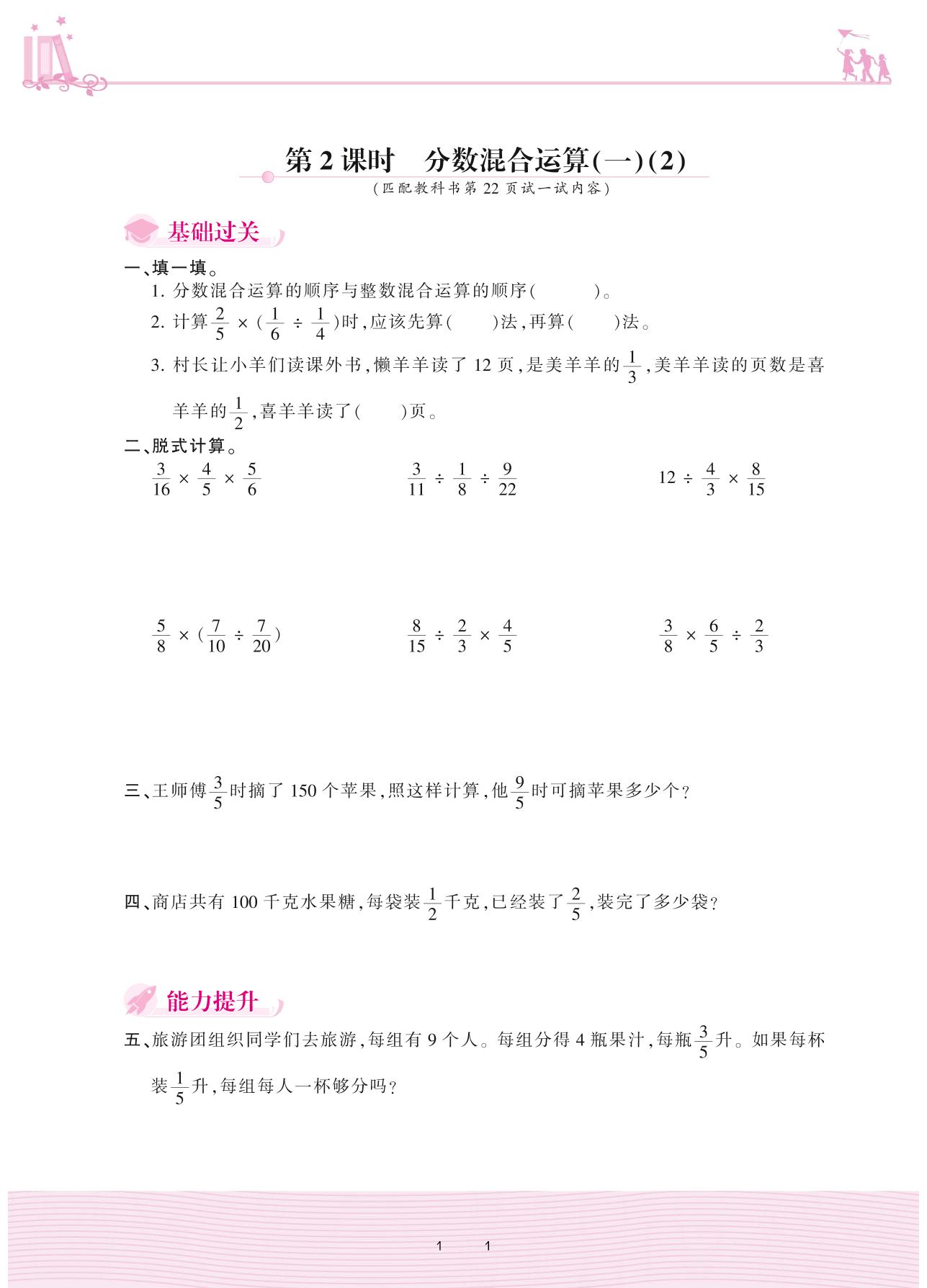 2020上册六年级数学北师版 二 分数混合运算——第2课时 分数混合运算(一)(2)