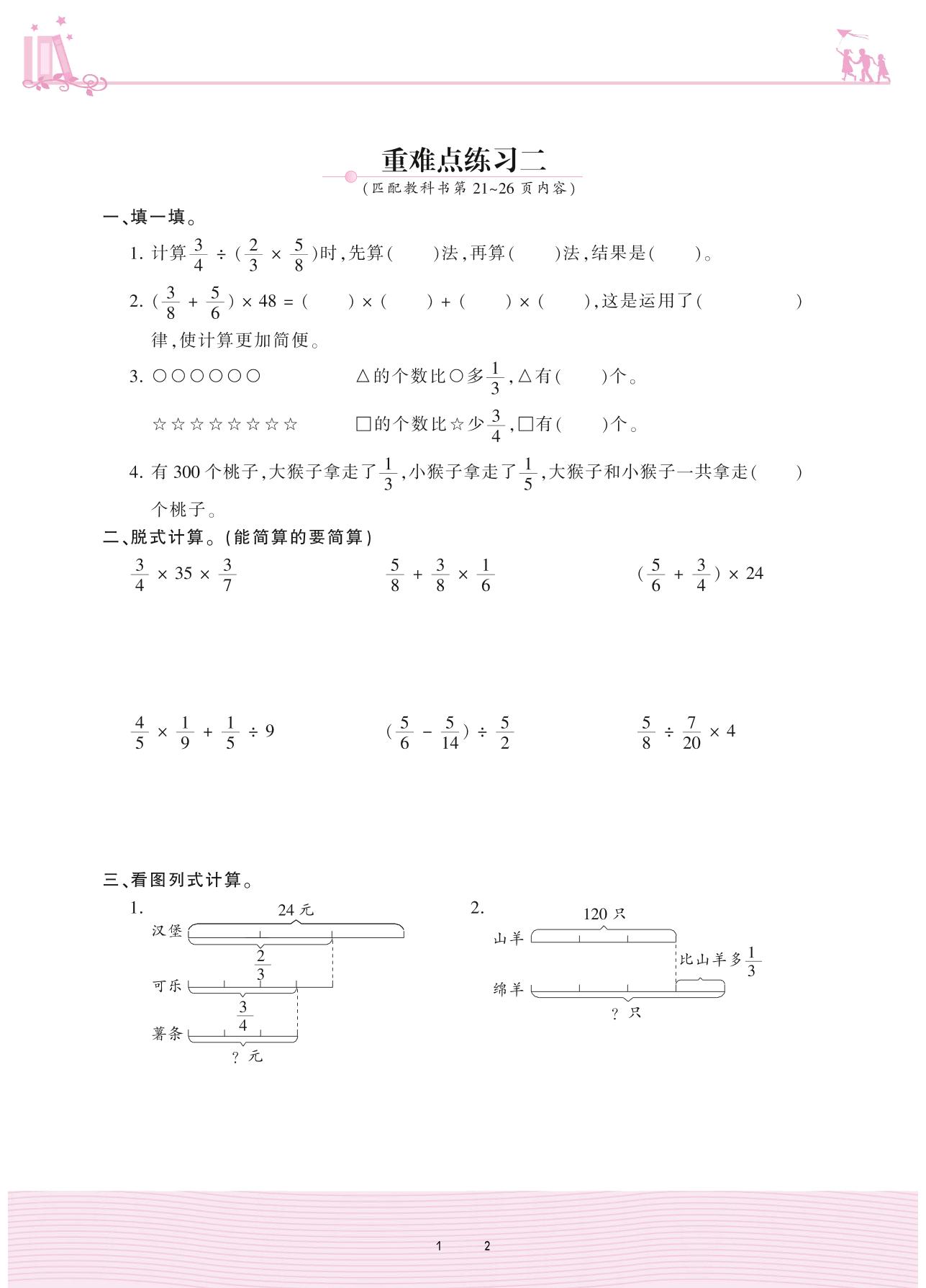 2020上册六年级数学北师版 二 分数混合运算——重难点练习二