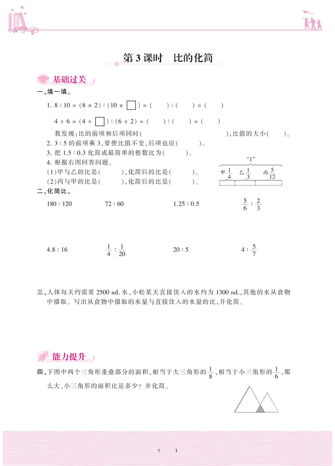 2020上册六年级数学北师版 六 比的认识——第3课时 比的化简