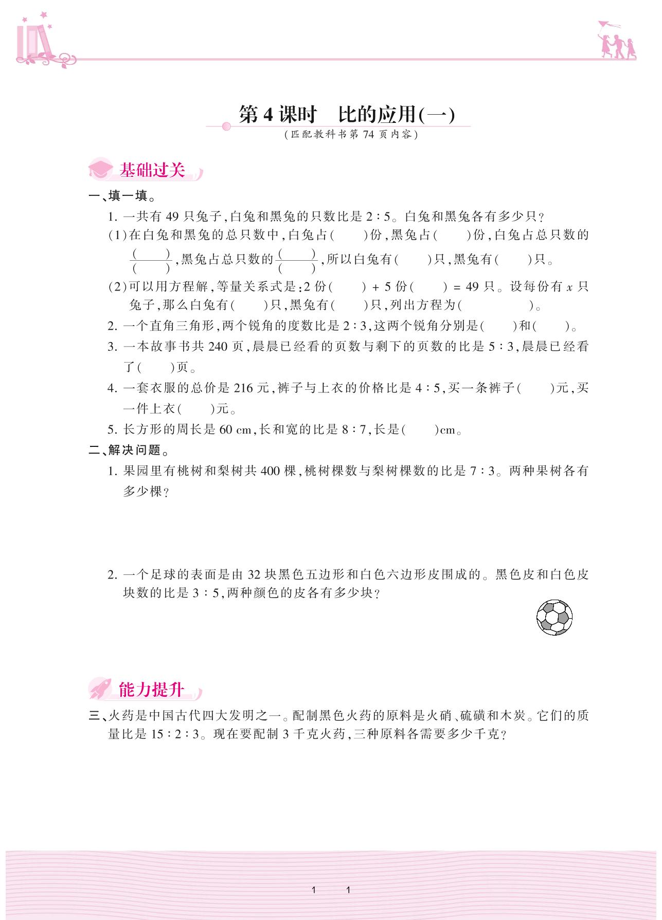 2020上册六年级数学北师版 六 比的认识——第4课时 比的应用(一)