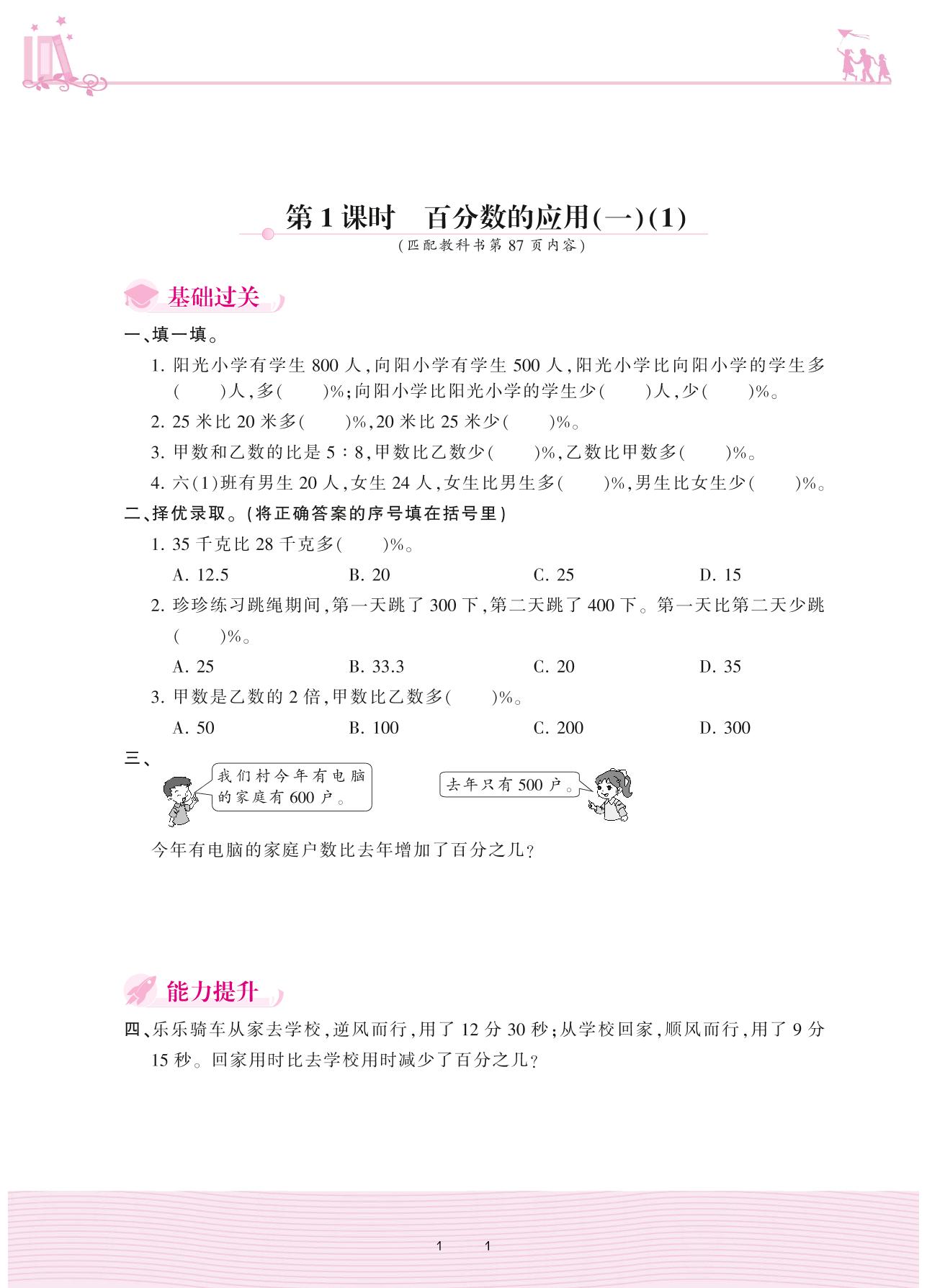 2020上册六年级数学北师版 七 百分数的应用——第1课时 百分数的应用(一)(1)