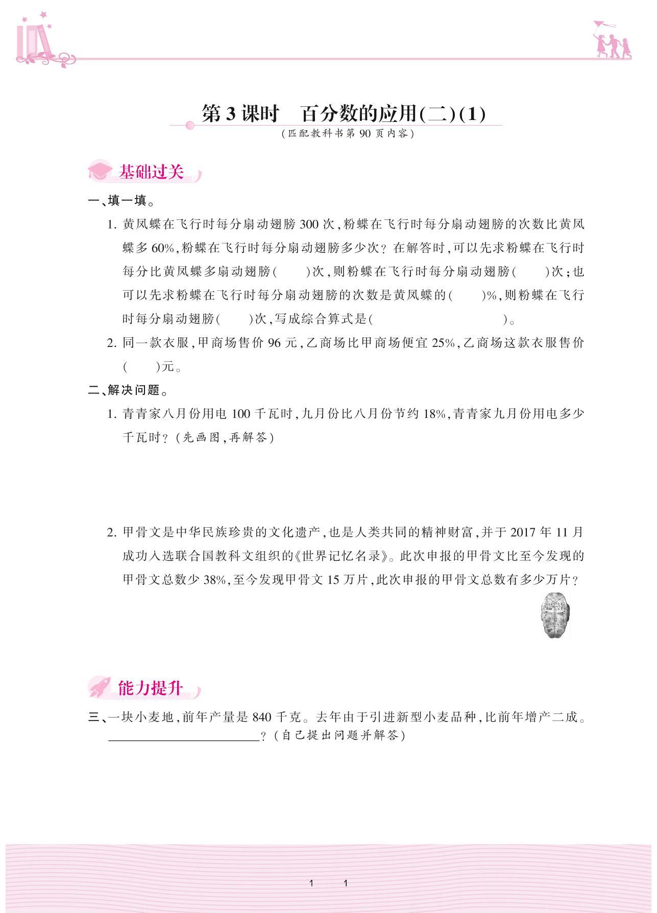 2020上册六年级数学北师版 七 百分数的应用——第3课时 百分数的应用(二)(1)
