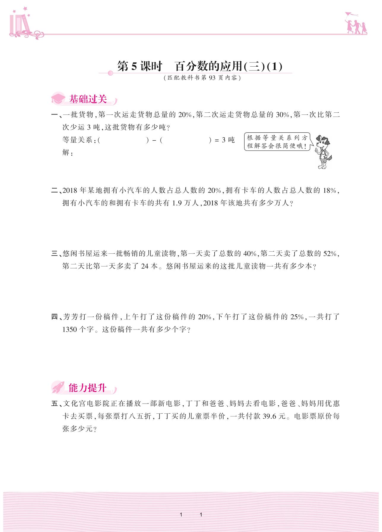 2020上册六年级数学北师版 七 百分数的应用——第5课时 百分数的应用(三)(1)